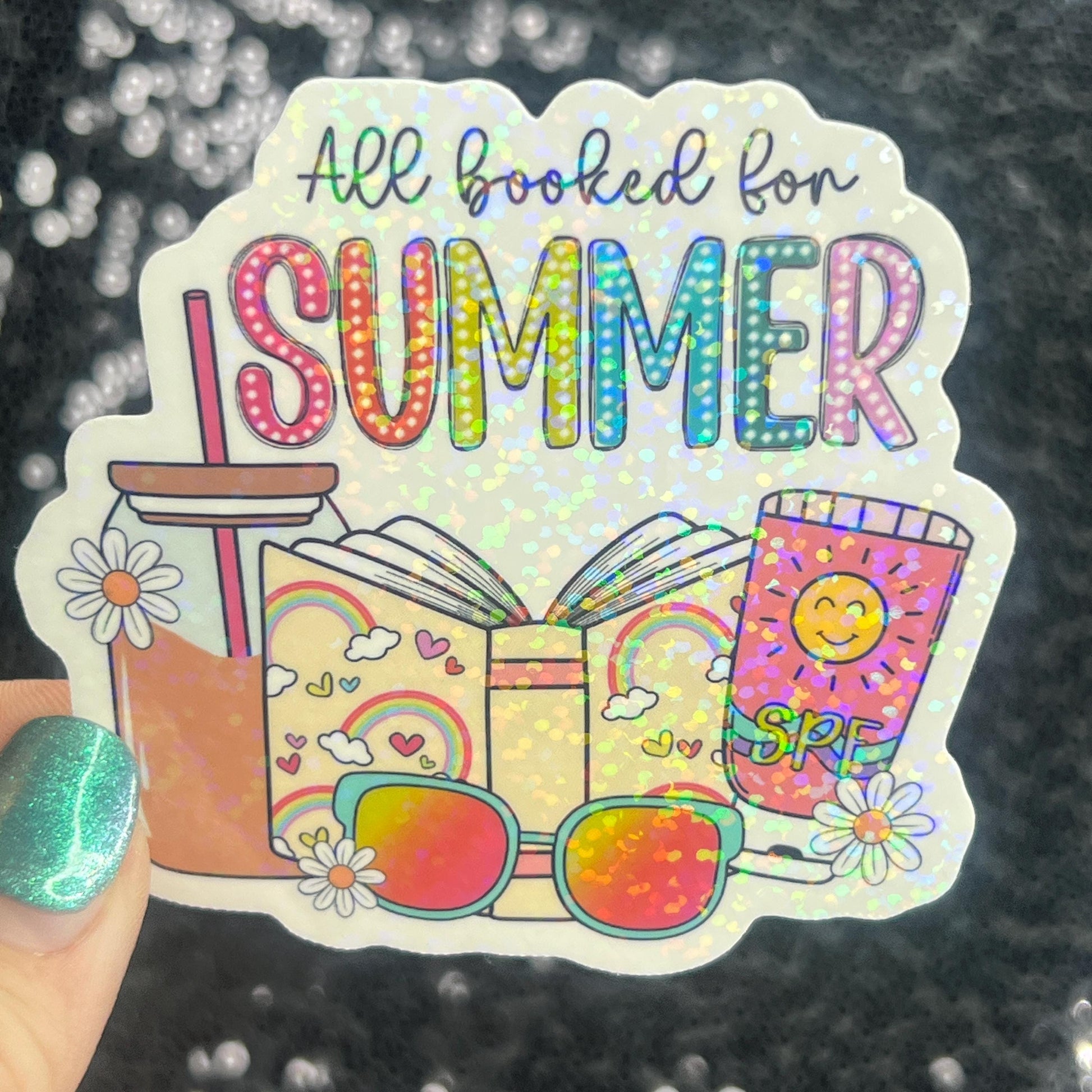 All Booked for Summer Holographic Sparkly Sticker Book Lover, Booktok, kindle waterbottle laptop Romance Decal Beach Reads Vacation Decal