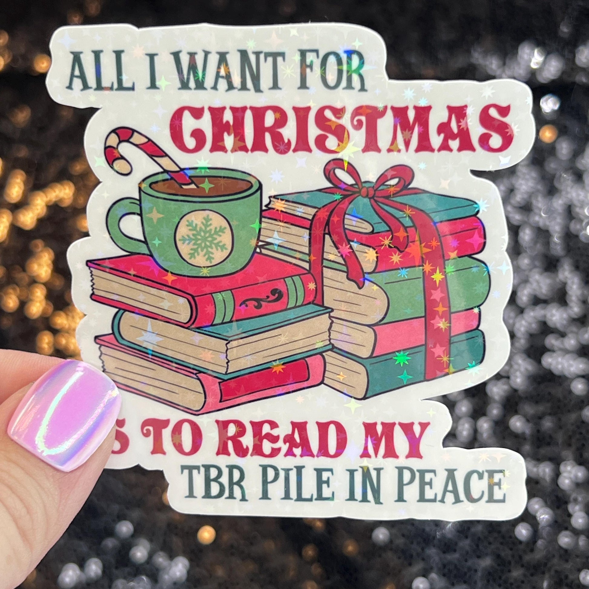 All I Want for Christmas is to Read my TBR Pile in Peace Holographic Sticker Xmas Bookish Kindle Reader Decal Book Lover Christmas Gift
