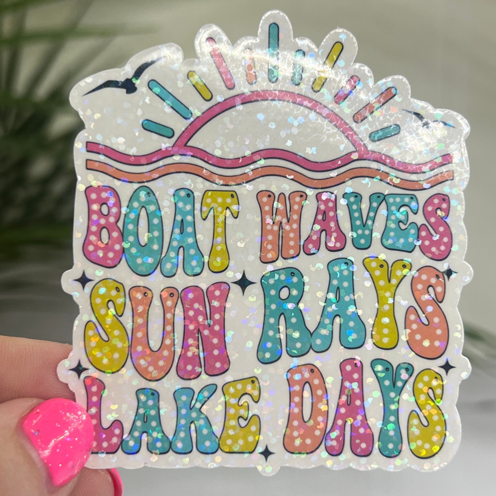 Boat Waves Sun Rays Lake Days Holographic Sparkly Sticker Boating Outdoor Decal Nature Adventure Sticker Lake House Lake Life Sticker