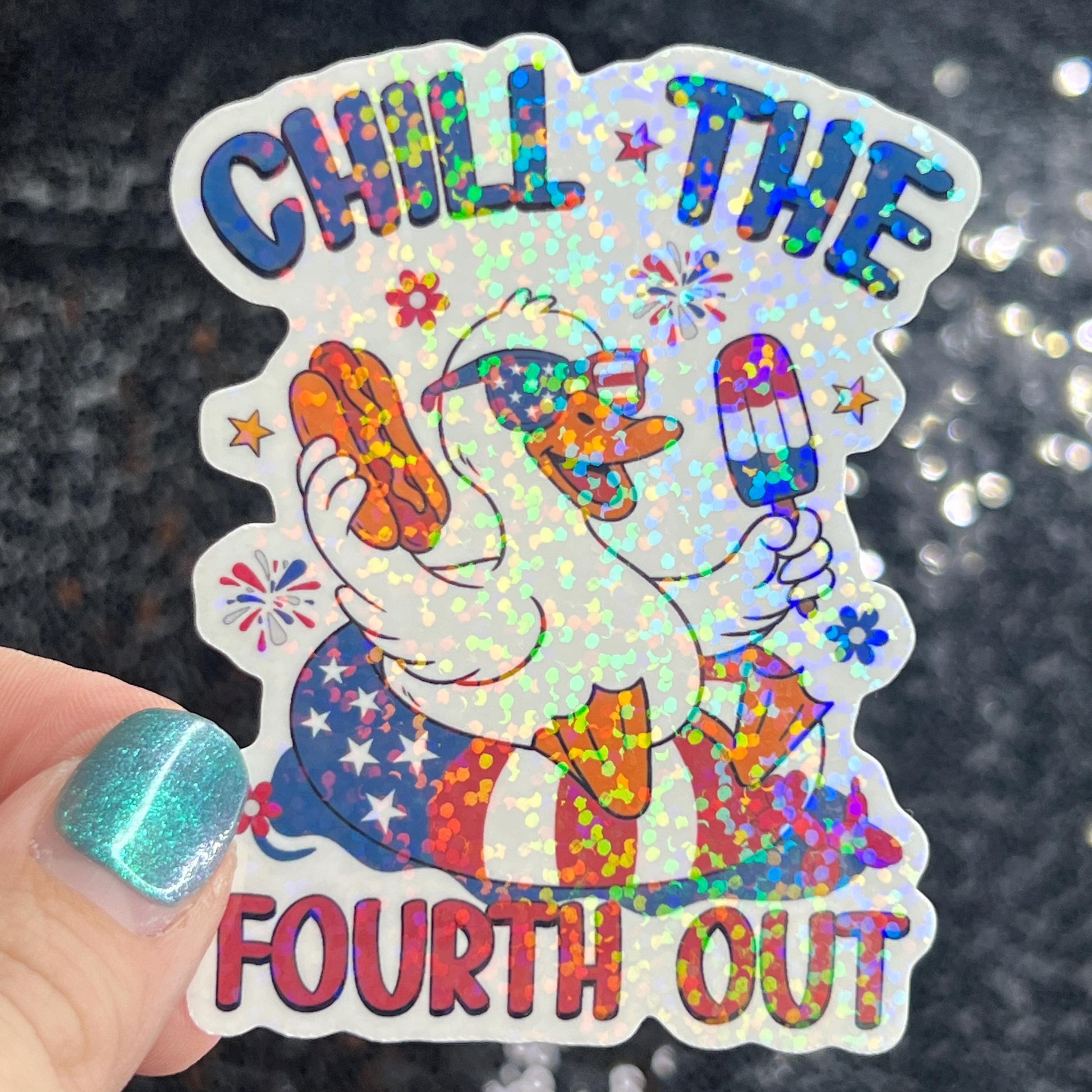 Chill the fourth out 4th of the July Silly Duck Funny Holographic Sticker Mental Health Sticker Sparkly Spread Positivity Good Vibes Decal
