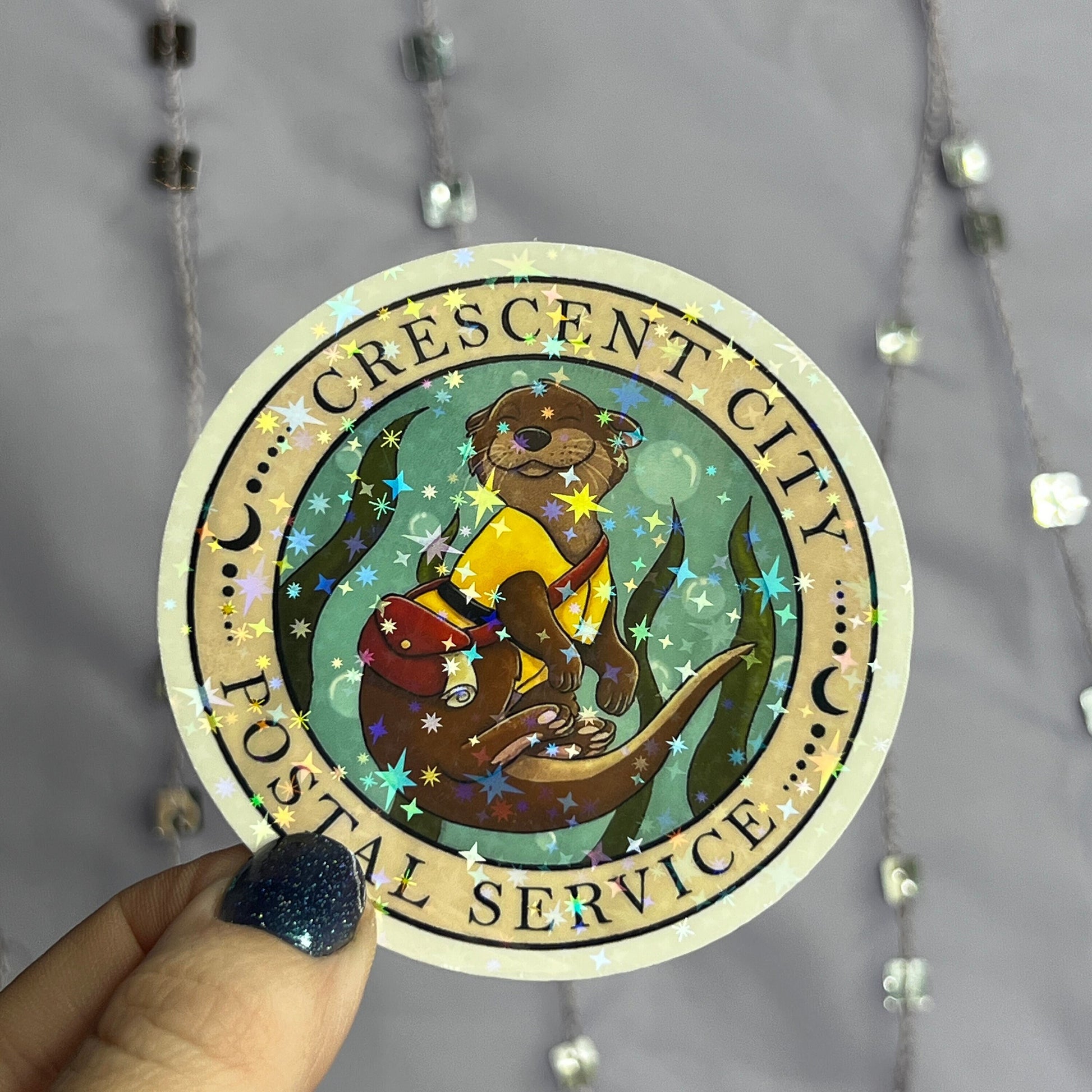 Crescent City River Otter Postal Service Holographic Sticker, HOSAB HOEAB Decal, SJM laptop waterproof sticker bookish Waterbottle decal