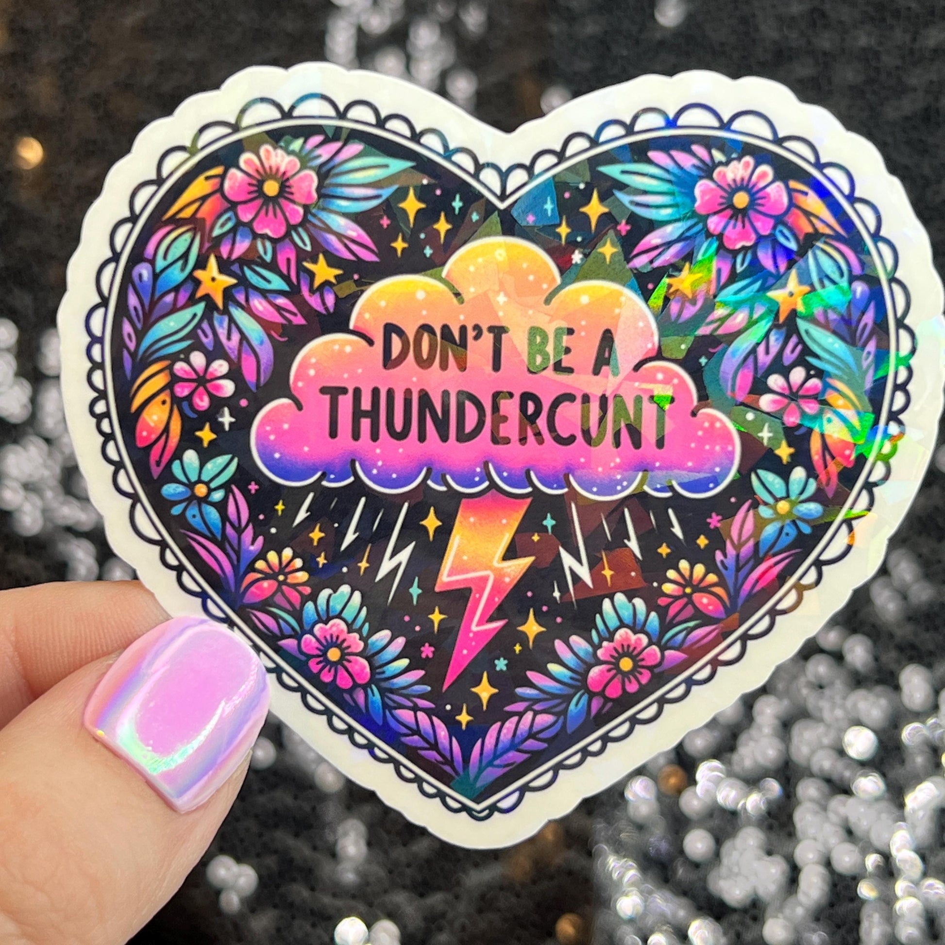 Don't be a Thundercunt Dark Humor Silly Funny Sparkly Holographic Sticker Mental Health Spread Good Vibes Inspirational Quote Decal