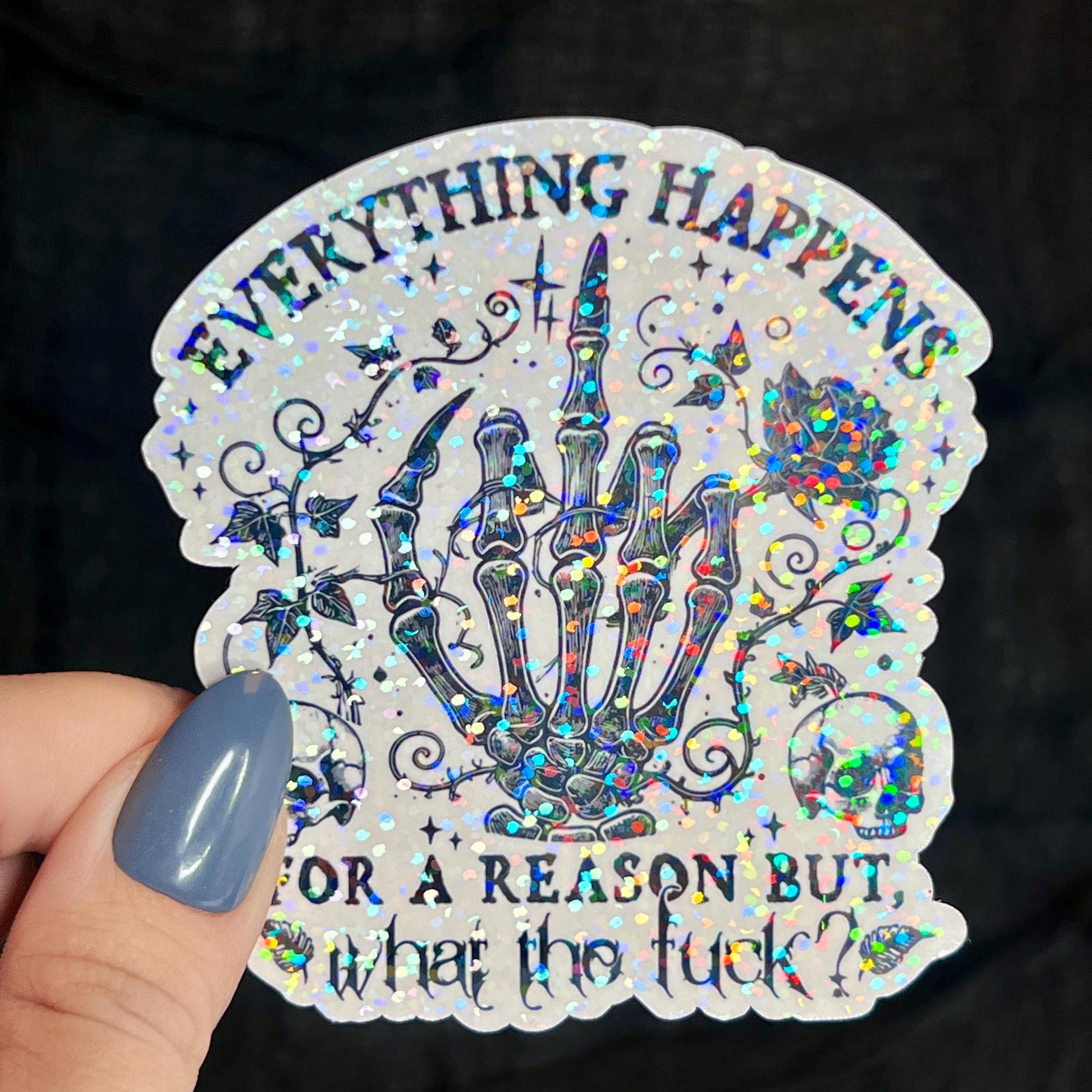 Everything Happens for a Reason, But What the F*ck Silly Dark Humor Holographic Sticker Sparkly Spread Positivity Good Vibes Decal