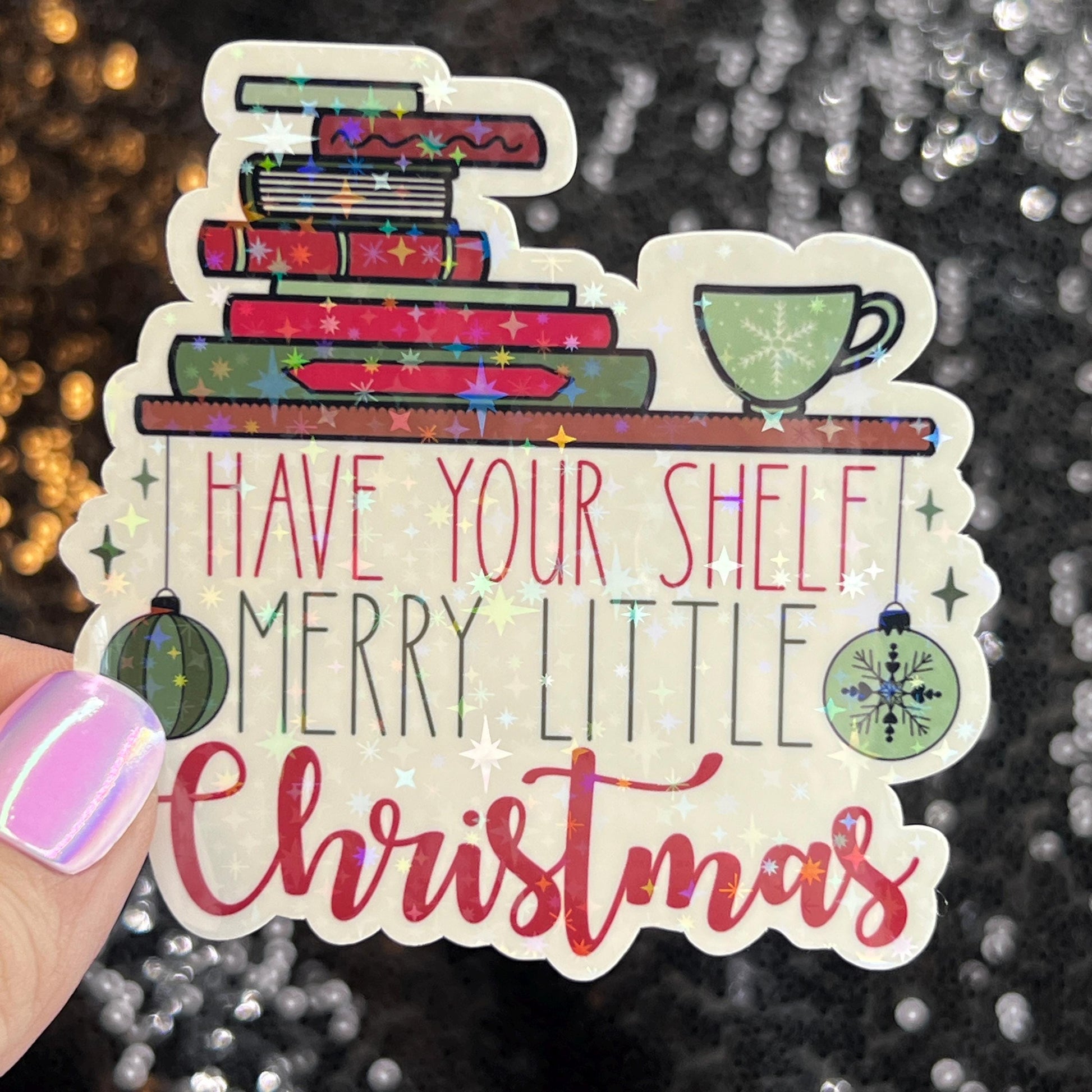 Have Your Shelf a Merry Little Christmas Holographic Sticker, Xmas Bookish Kindle Sticker Reader Decal Book Lover Christmas Gift Book Club