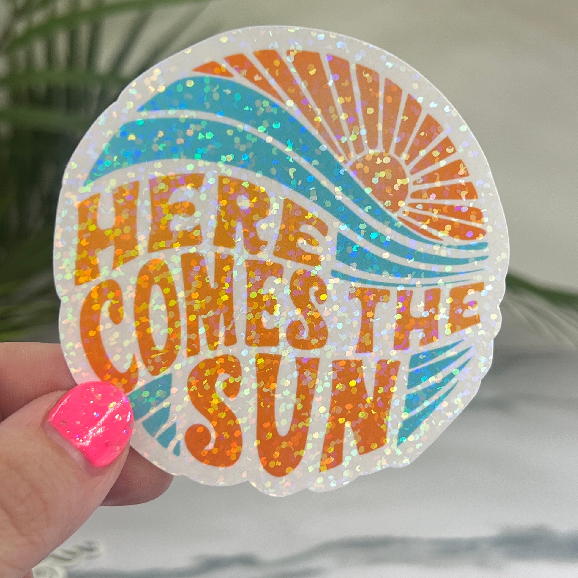 Here Comes the Sun Summer Holographic Sparkly Sticker Beach Life Decal Boating Sticker Summer Vacation Ocean Life Sticker