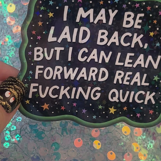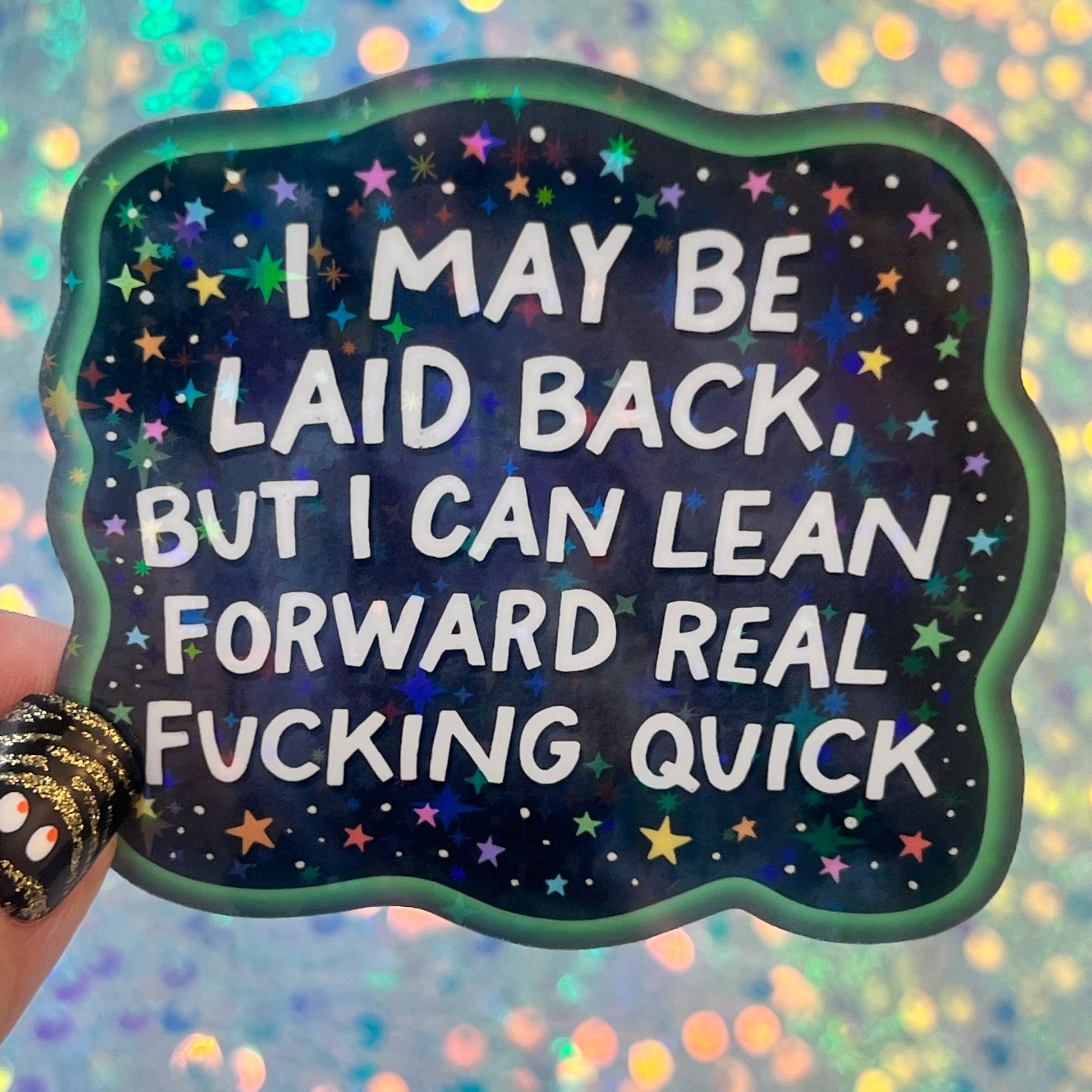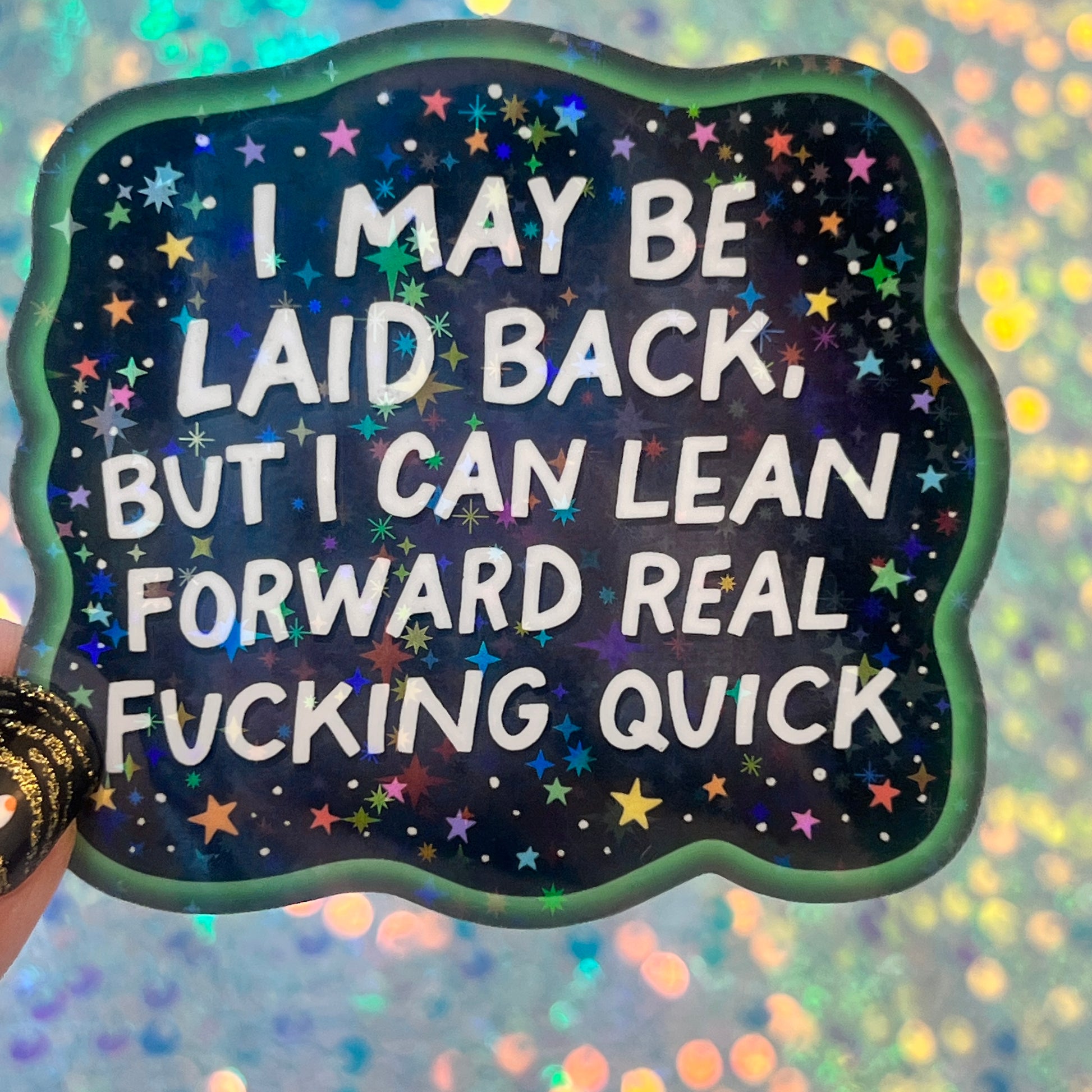 I May Be Laid Back But I Can Lean Forward Real Quick Funny Holographic Sticker Mental Health Sticker Sparkly Spread Positivity Good Vibes