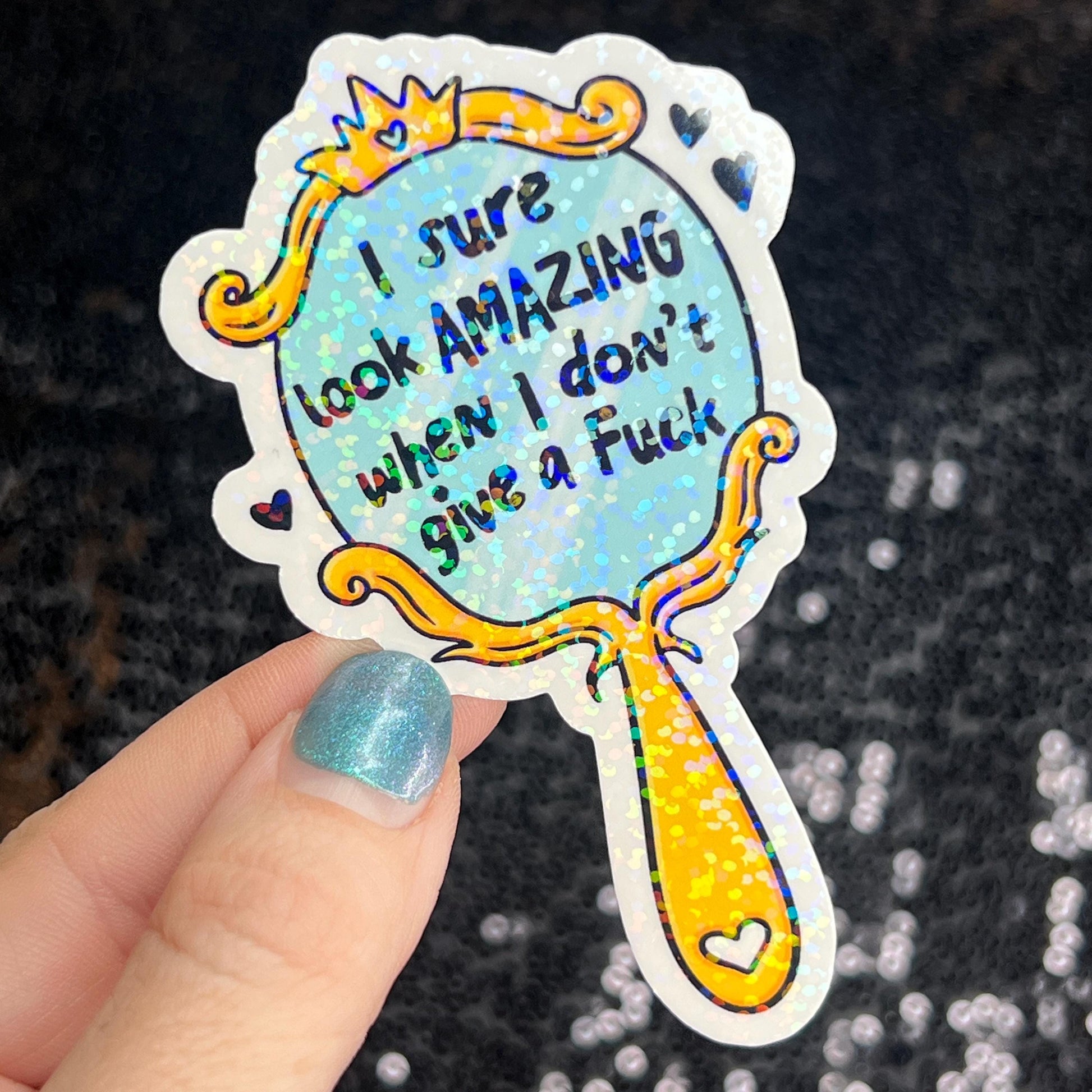 I sure look amazing when I don't give a f Holographic Sticker Mental Health Sparkly Spread Positivity Decal Inspirational Work