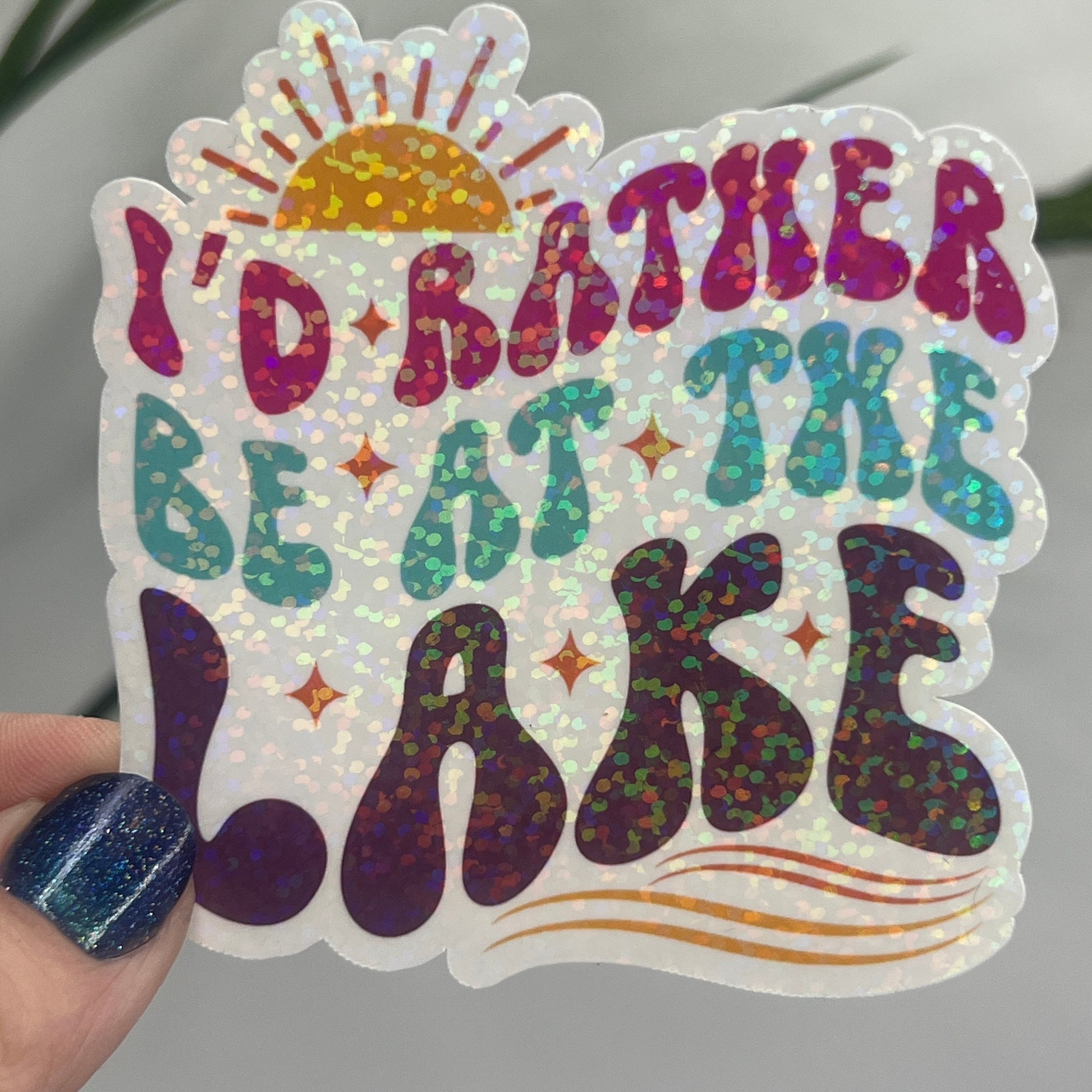 I'd Rather by at the Lake Holographic Sparkly Sticker Adventure Sticker Boating Outdoor Decal Nature Sticker Lake House Sticker Lake Life