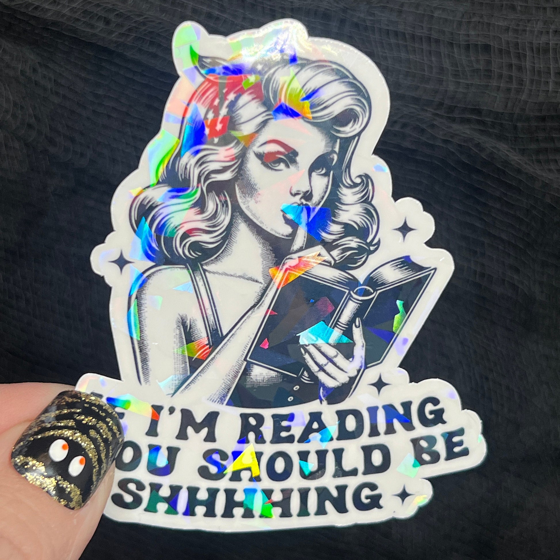 If I'm Reading You Should Be Shhhing Sticker Holographic Book Lover, Spicy Dark Romance, Booktok, kindle waterbottle laptop Romance Decal