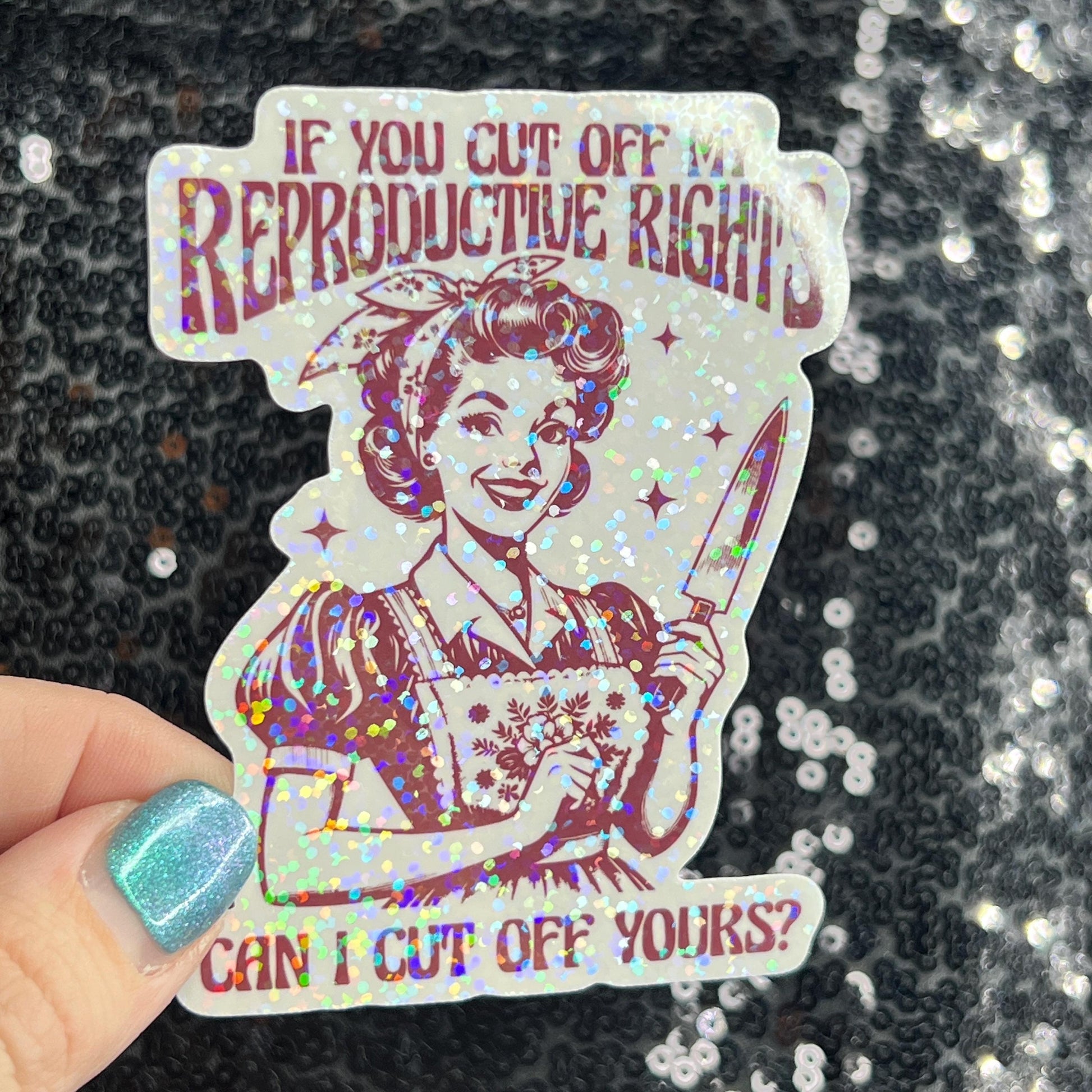 If You Cut Off My Reproductive Rights Can I Cut Off Yours Holographic Sticker Hands Off Protest Anti Trump Pro Choice Feminist Sticker