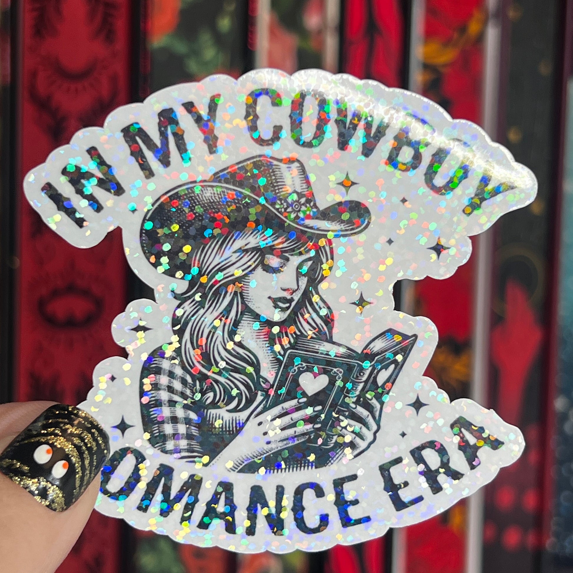 In My Cowboy Romance Era Sticker Holographic Book Lover Sparkly Decal, Spicy Dark Romance, kindle waterbottle laptop Reader Gift