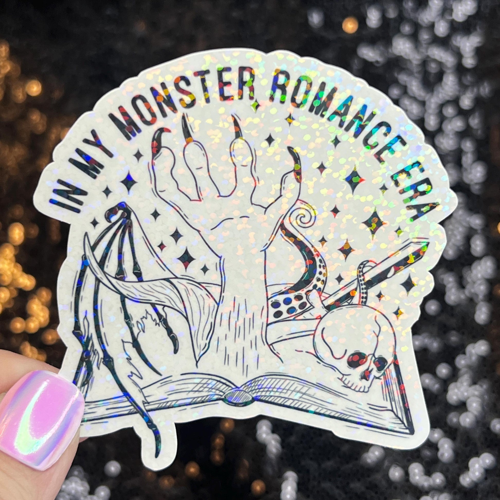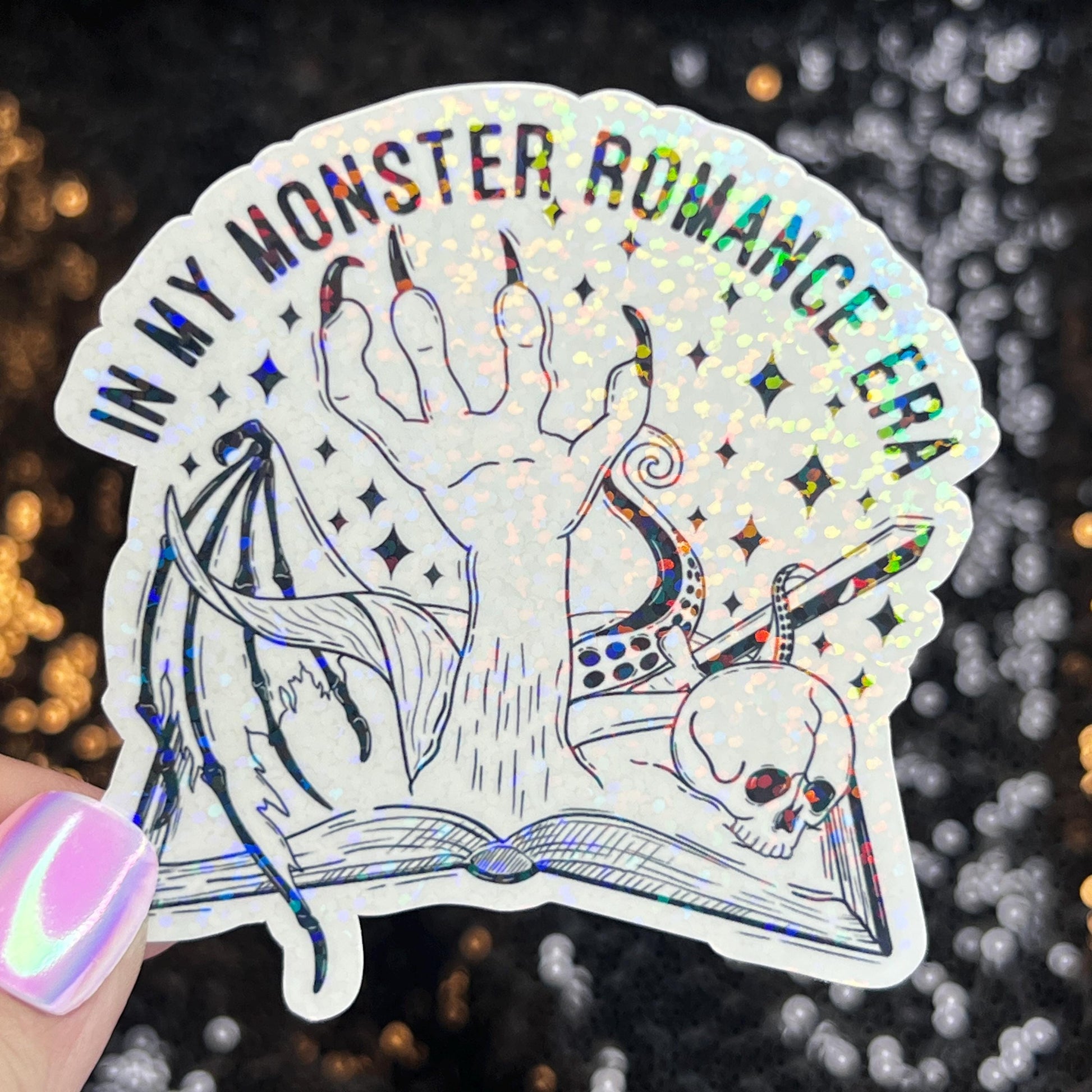 In My Monster Romance Era Holographic Sticker, Spicy Dark Romance, Booktok, kindle waterbottle laptop stickers Smut decal Reader Bookish