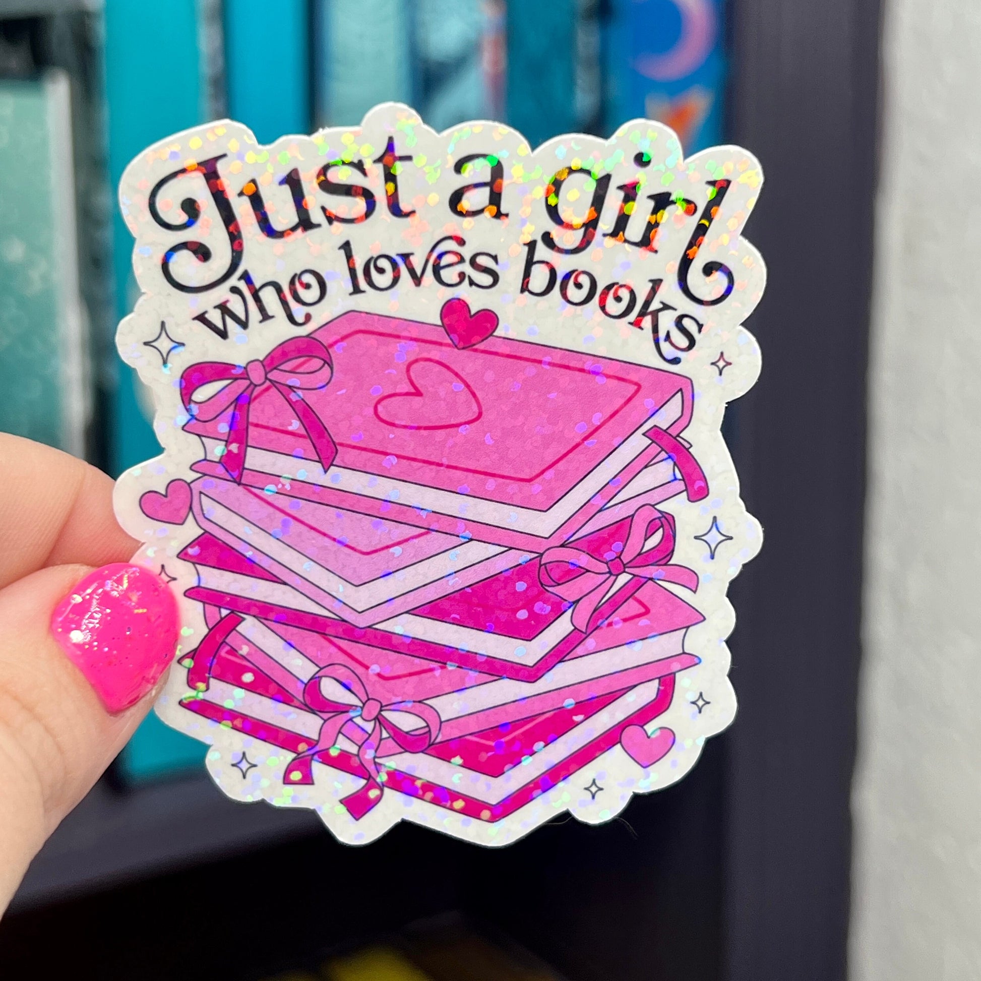 Just A Girl Who Loves Books Hot Pink Sticker Holographic Book Lover Sparkly Decal, Spicy Dark Romance Bookish, kindle waterbottle laptop