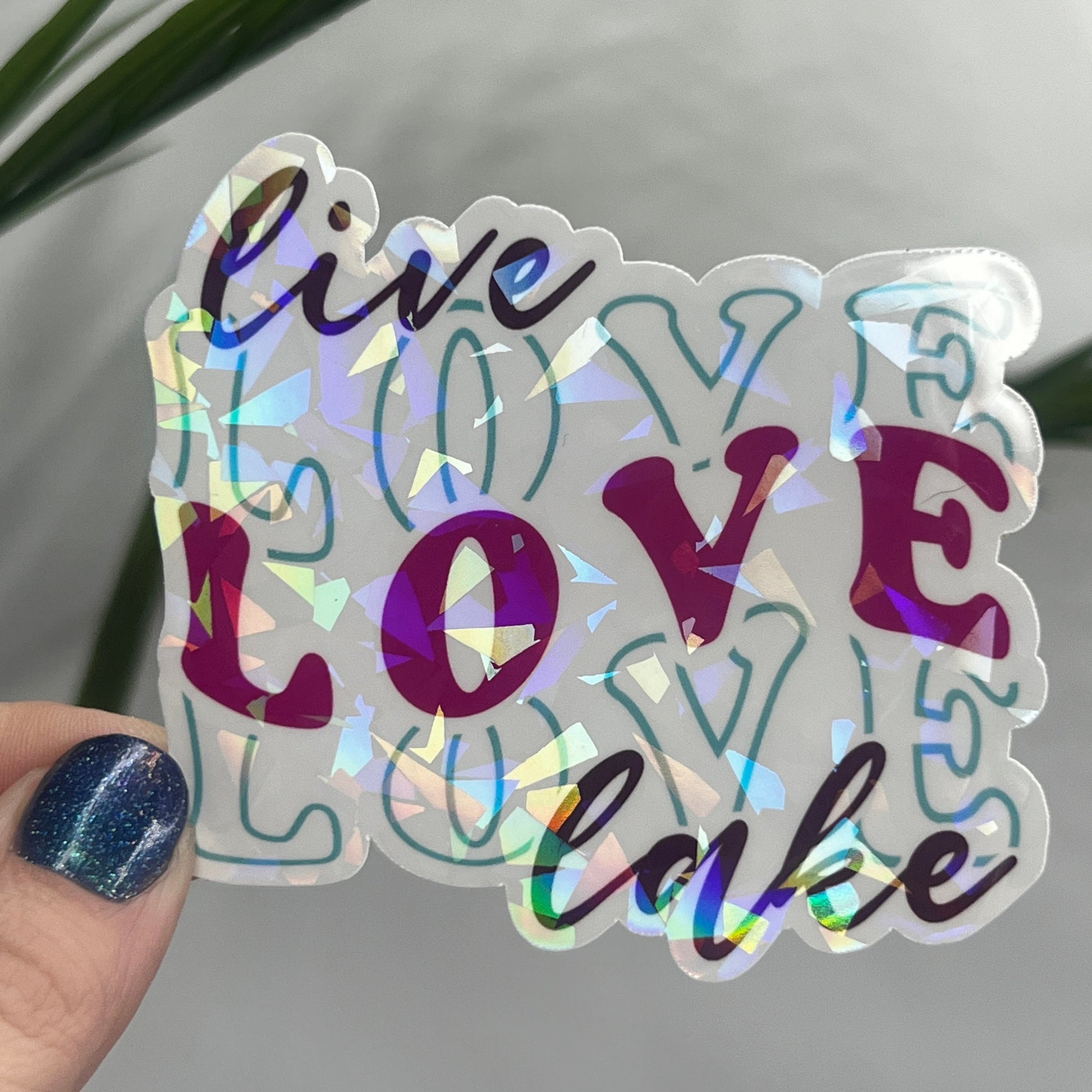 Live Love Lake Holographic Sparkly Sticker Boating Outdoor Decal Nature Adventure Sticker Lake House Sticker Lake Life Sticker