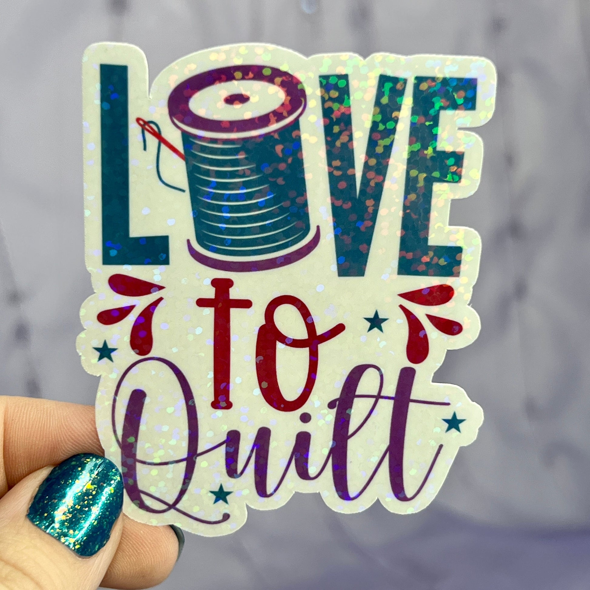 Love to Quilt Holographic Quilting Sticker sewing Waterbottle sticker Craft Sticker Fabric Decal Sewing Machine Sticker