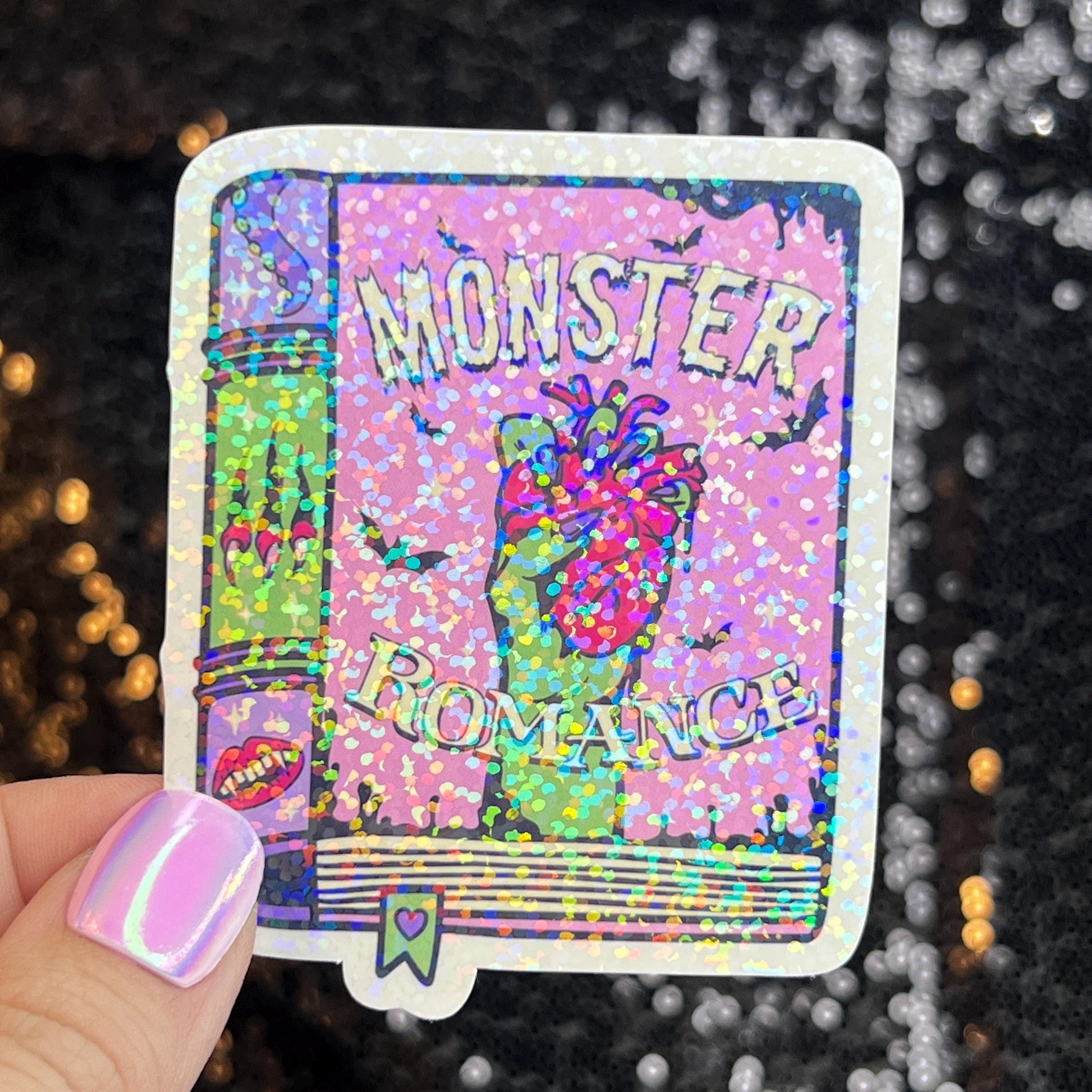 Monster Romance Sparkly Sticker Holographic Book Book Lover, Spicy Dark Romance, Booktok, kindle waterbottle laptop Romance Decal