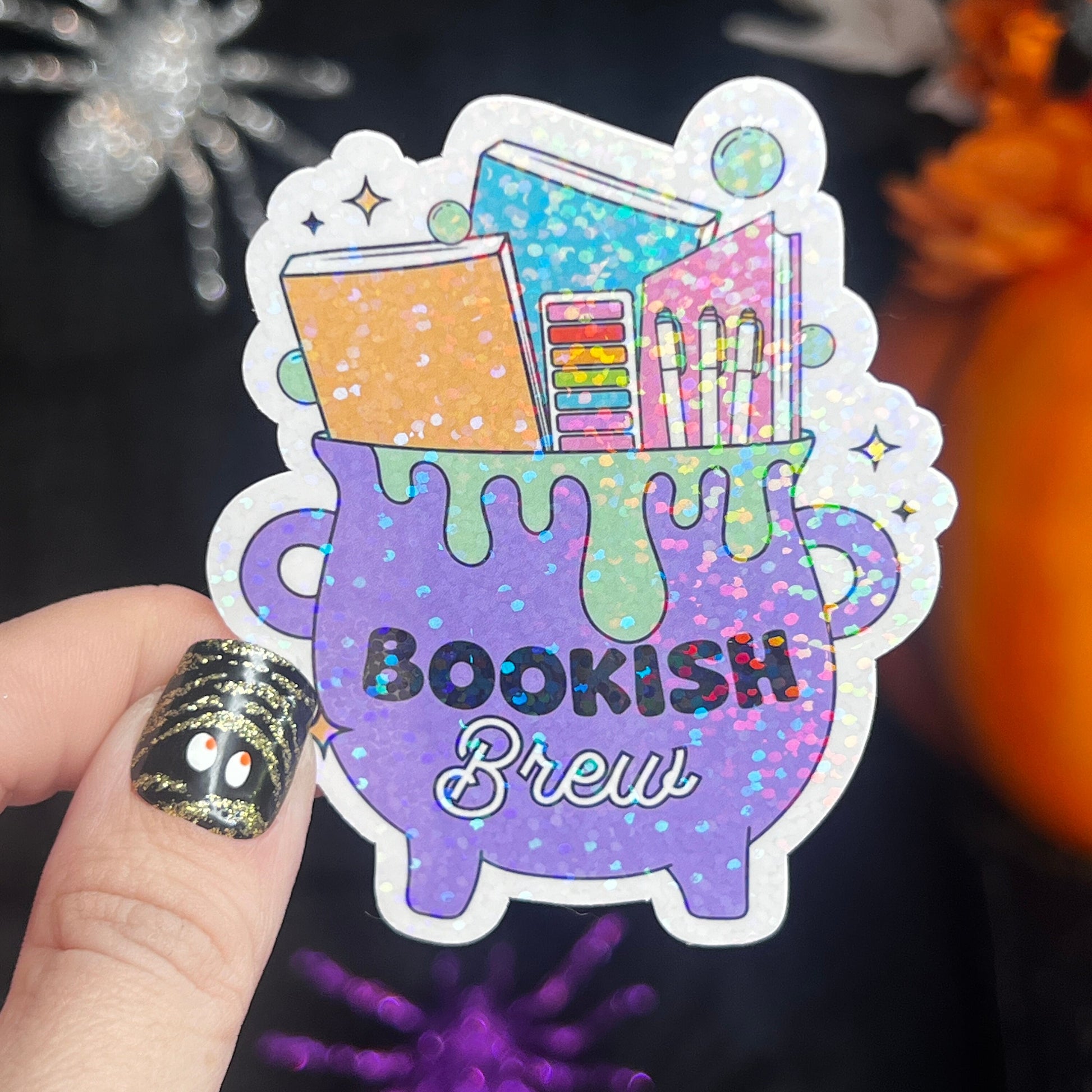 Purple Bookish Cauldron Halloween Bookshelf Holographic Sticker Halloween Kindle Decal Spooky Fall Reader Gift Bookish Decal