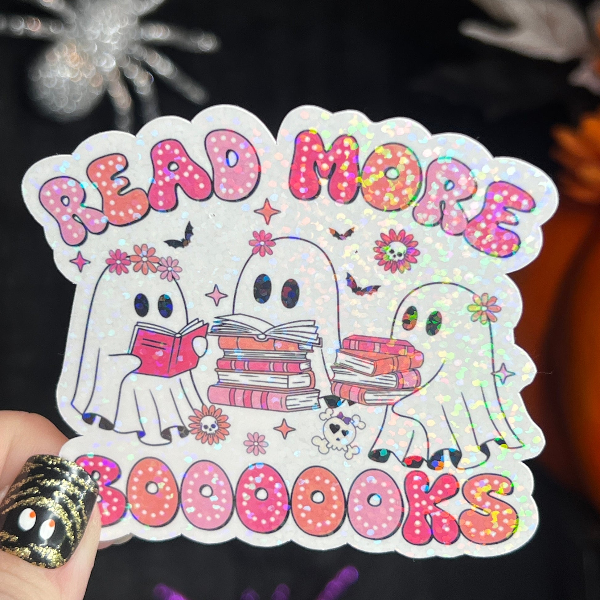 Read More Booooks Pastel Ghost Holographic Sticker Halloween Kindle Decal Spooky Fall Reader Gift Bookish Decal