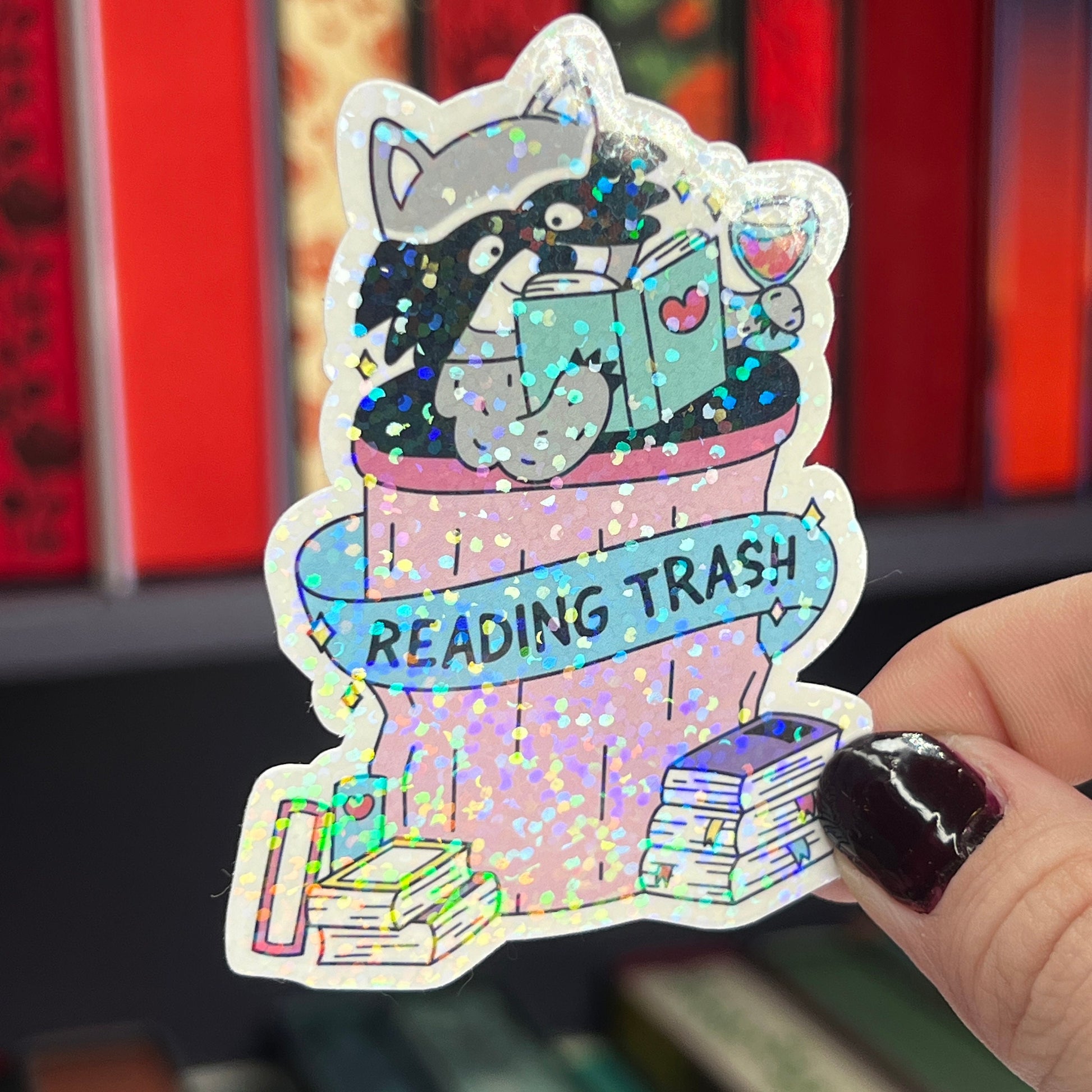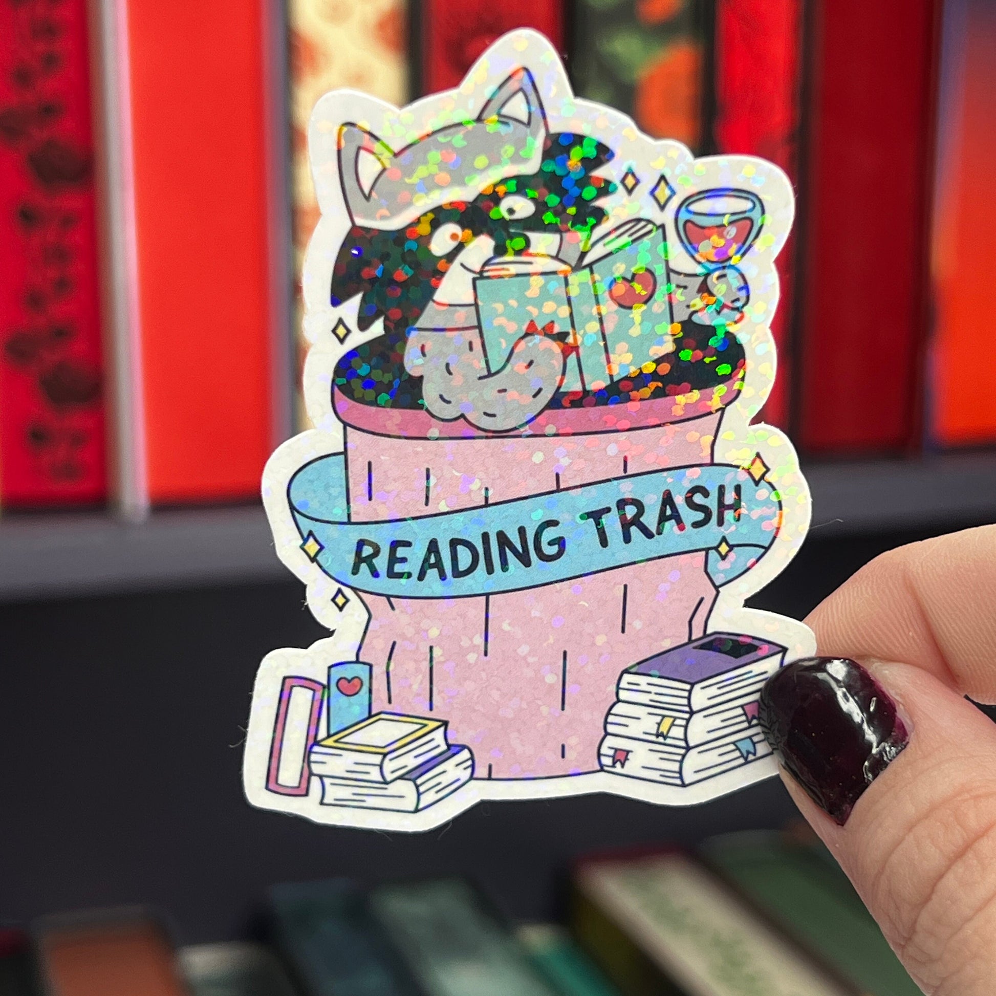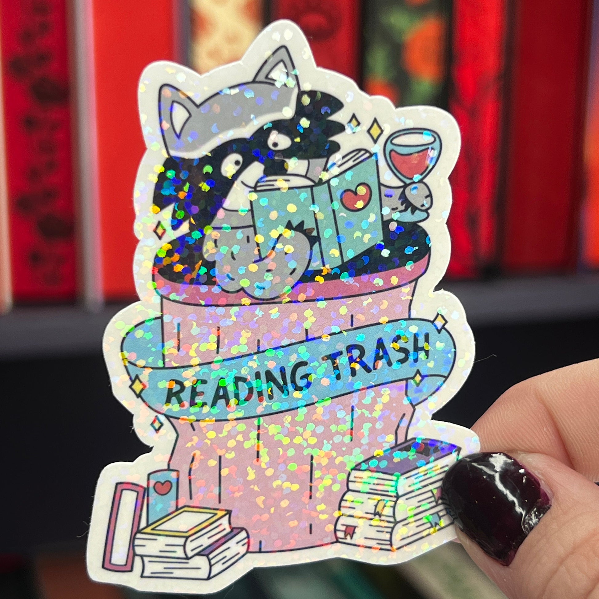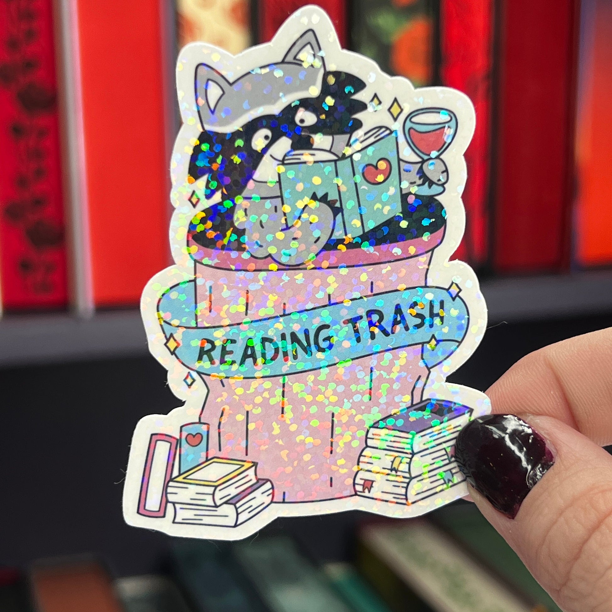 Reading Trash Raccoon Holographic Sticker, Spicy Dark Romance, Booktok, kindle waterbottle laptop stickers Smut decal Funny Reader Bookish c