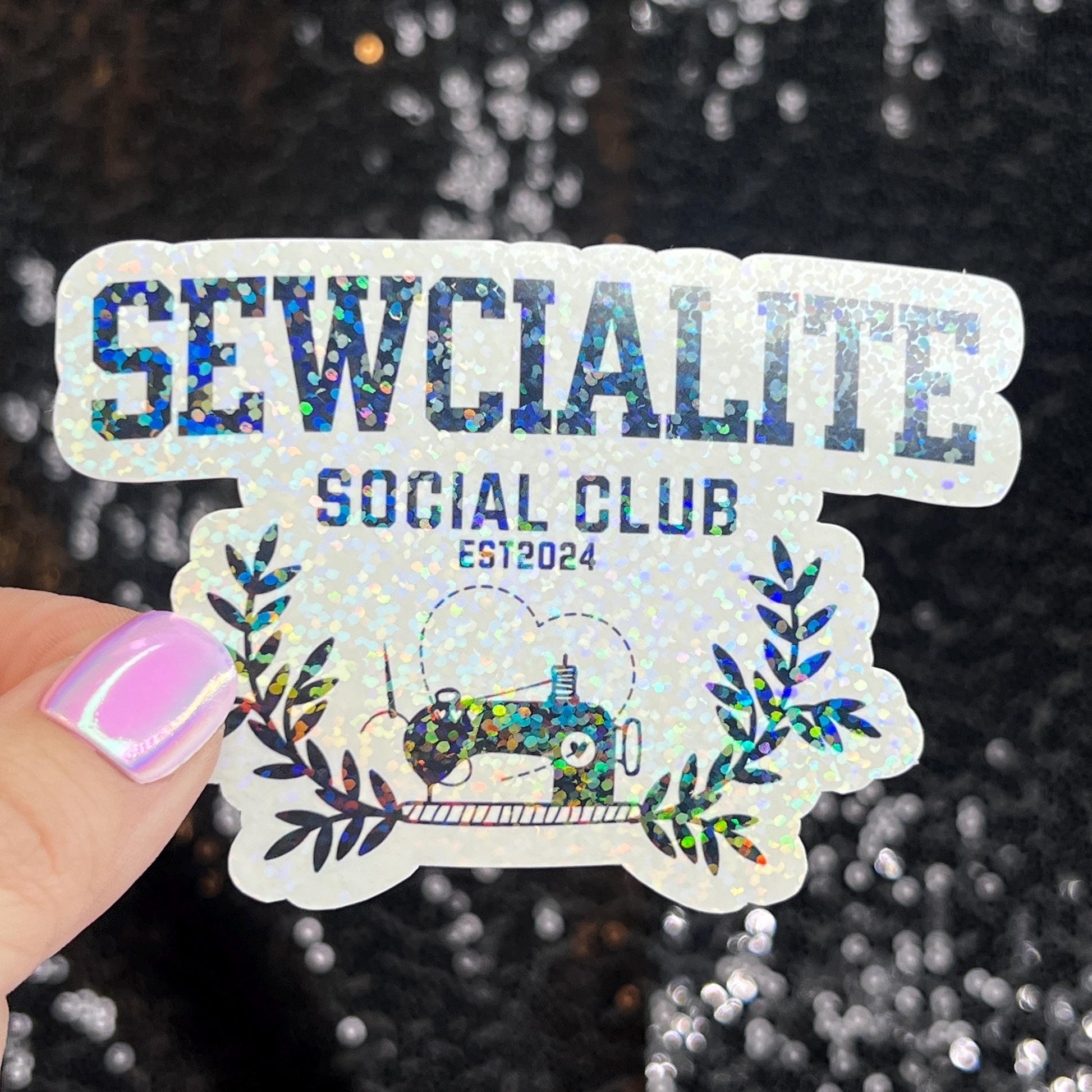 Sewcialite Social Club Sparkly Holographic Quilting Sticker sewing Waterbottle sticker Craft Sticker Fabric Decal Cross Stitch Sticker