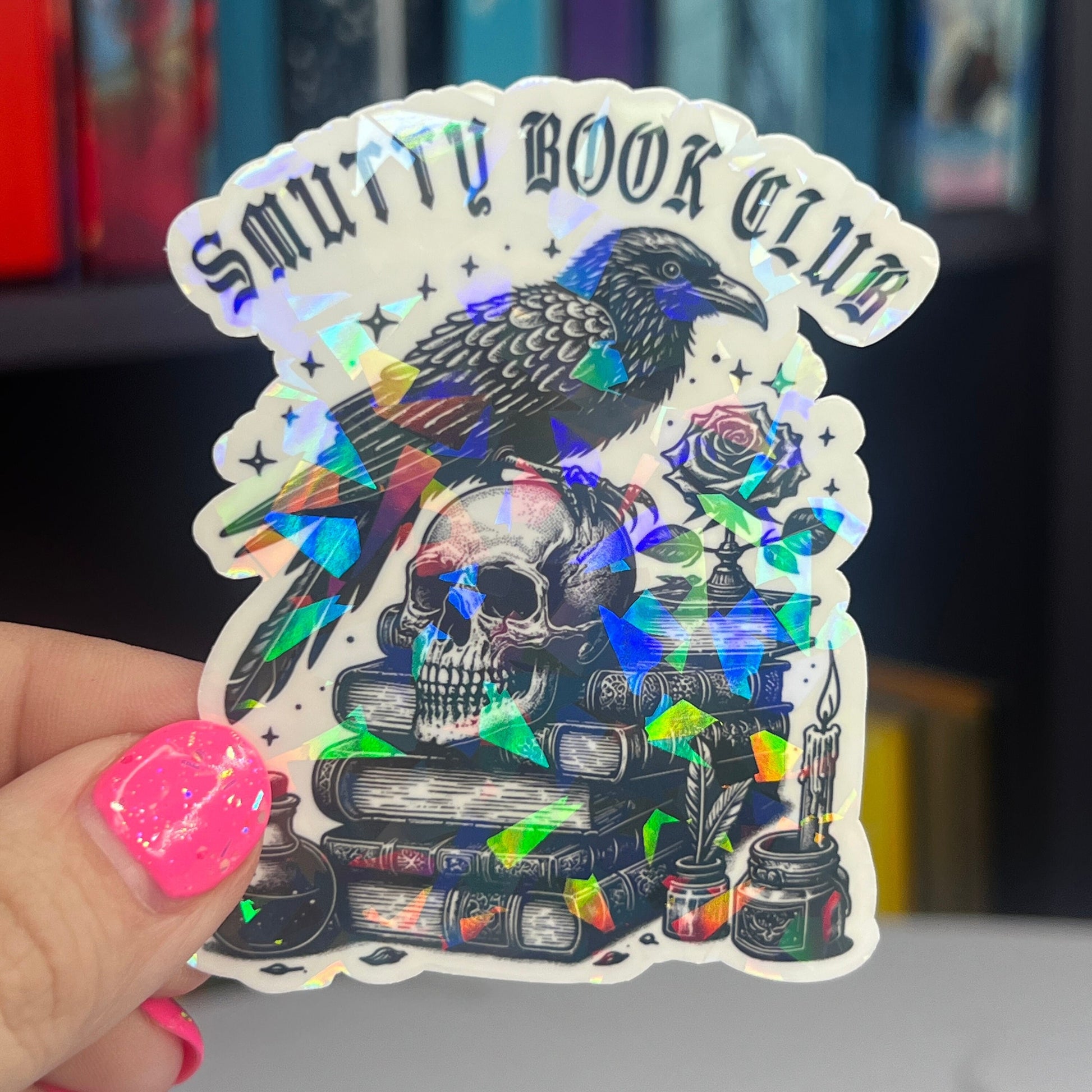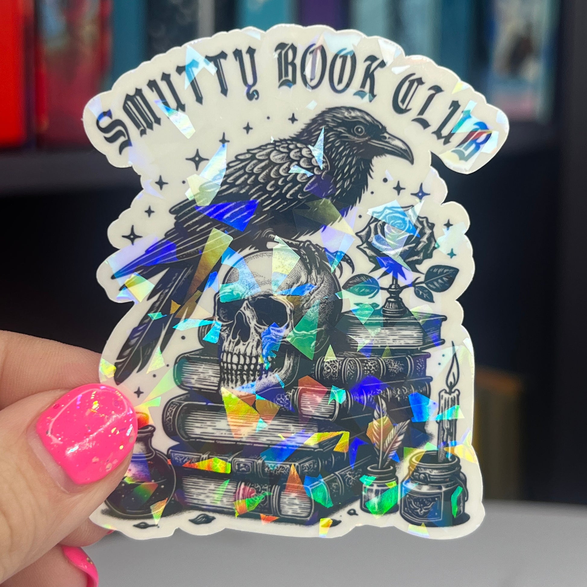 The Smutty Book Club sticker measures 3 inches at its longest point and showcases a striking gothic crow design. Perfect for adding a bold, sparkling touch to your books, Kindles, or water bottles, it’s a must-have for lovers of dark romance and edgy aesthetics.