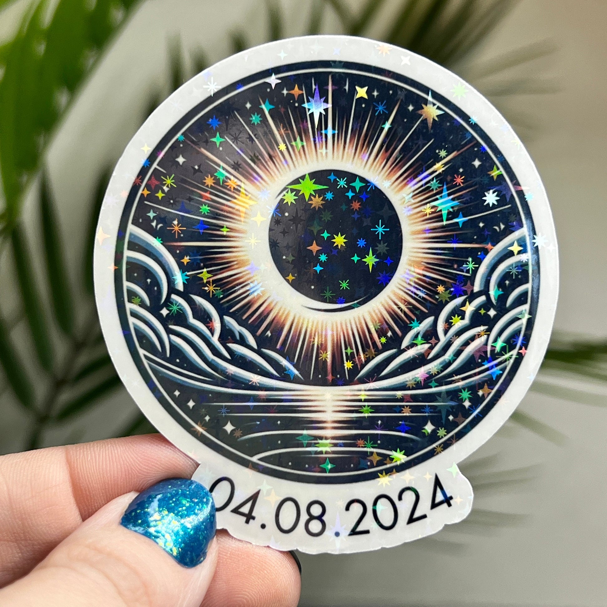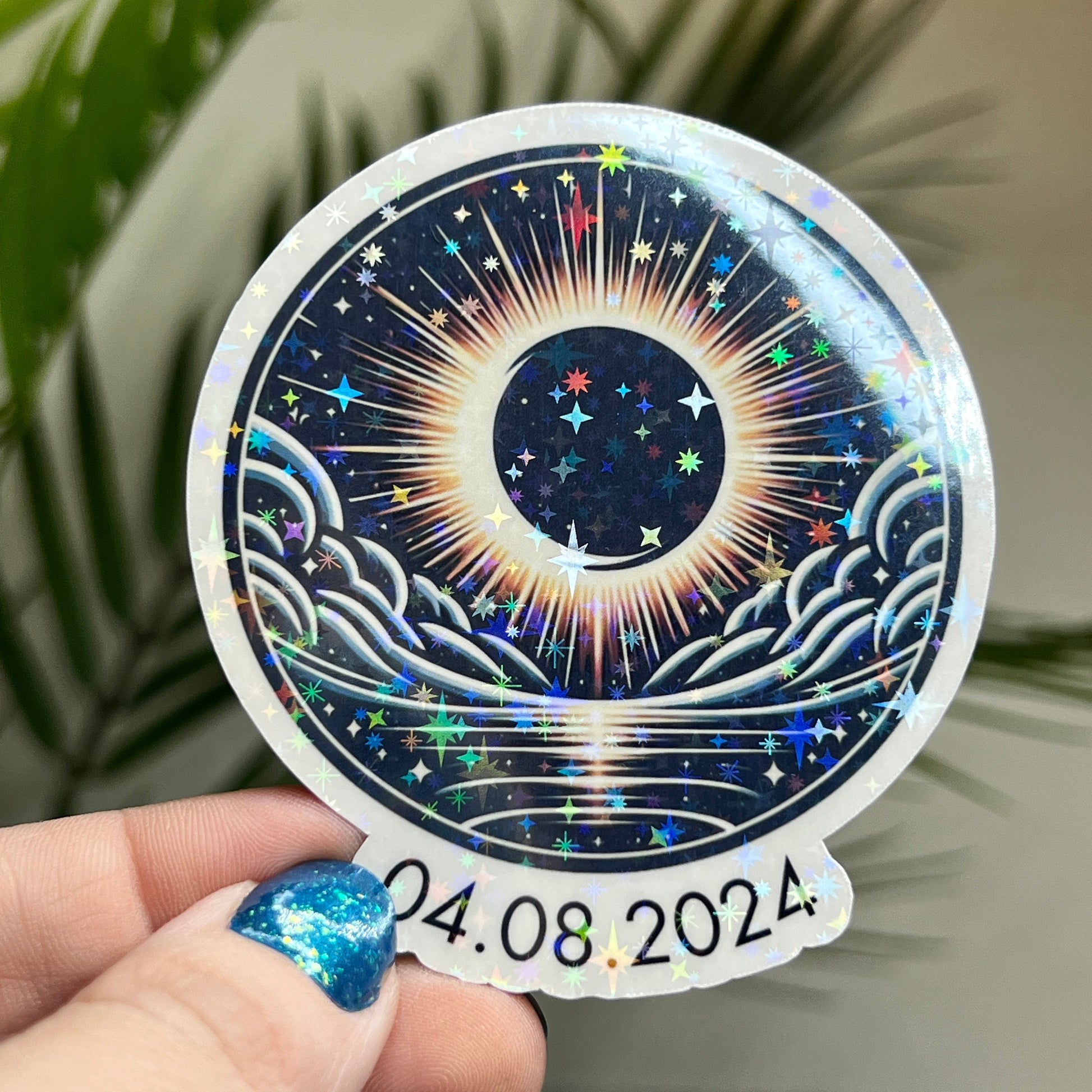 Solar Eclipse Holographic Sparkly Sticker 4.8.2024 Eclipse Souvenir Decal Solar Eclipse 2024 Sticker astronomy lover waterbottle sticker