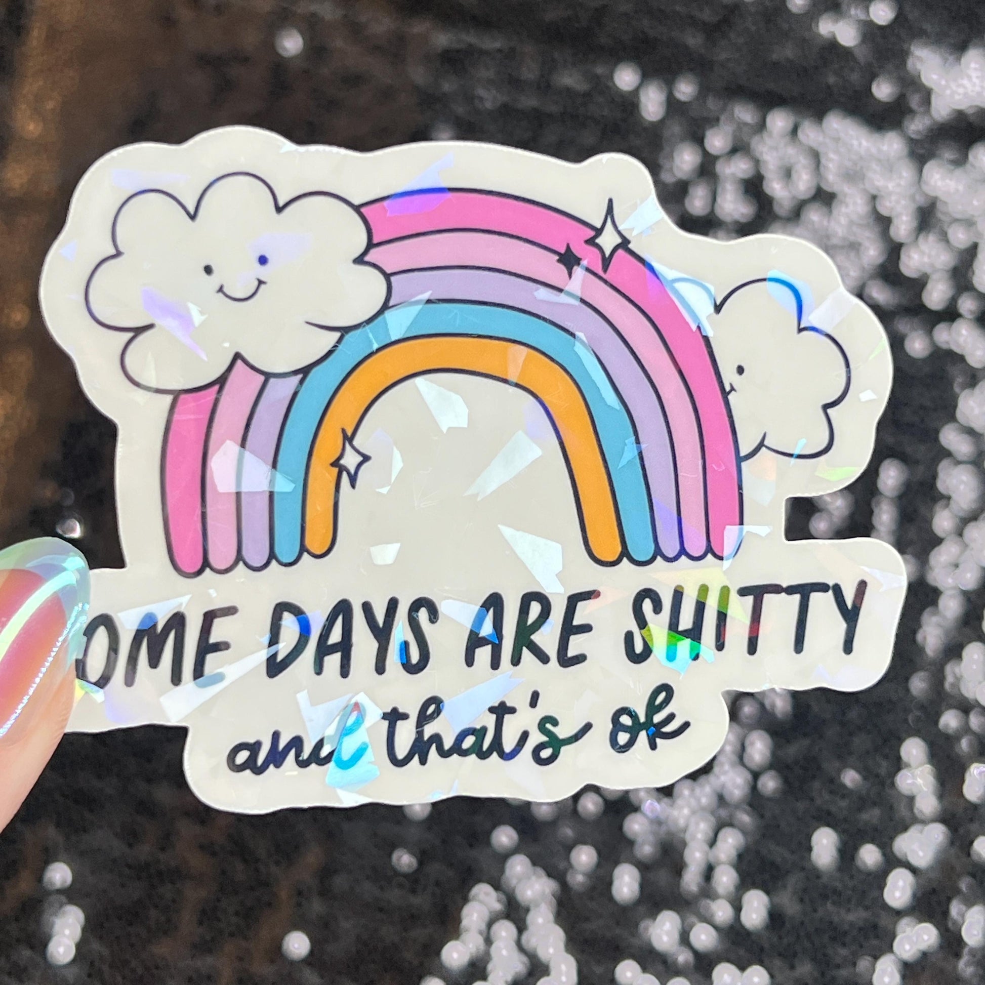 Some Days Are Sh... and That's Ok Holographic Sticker Mental Health Sticker Sparkly Spread Positivity Good Vibes Decal Inspirational Rainbow