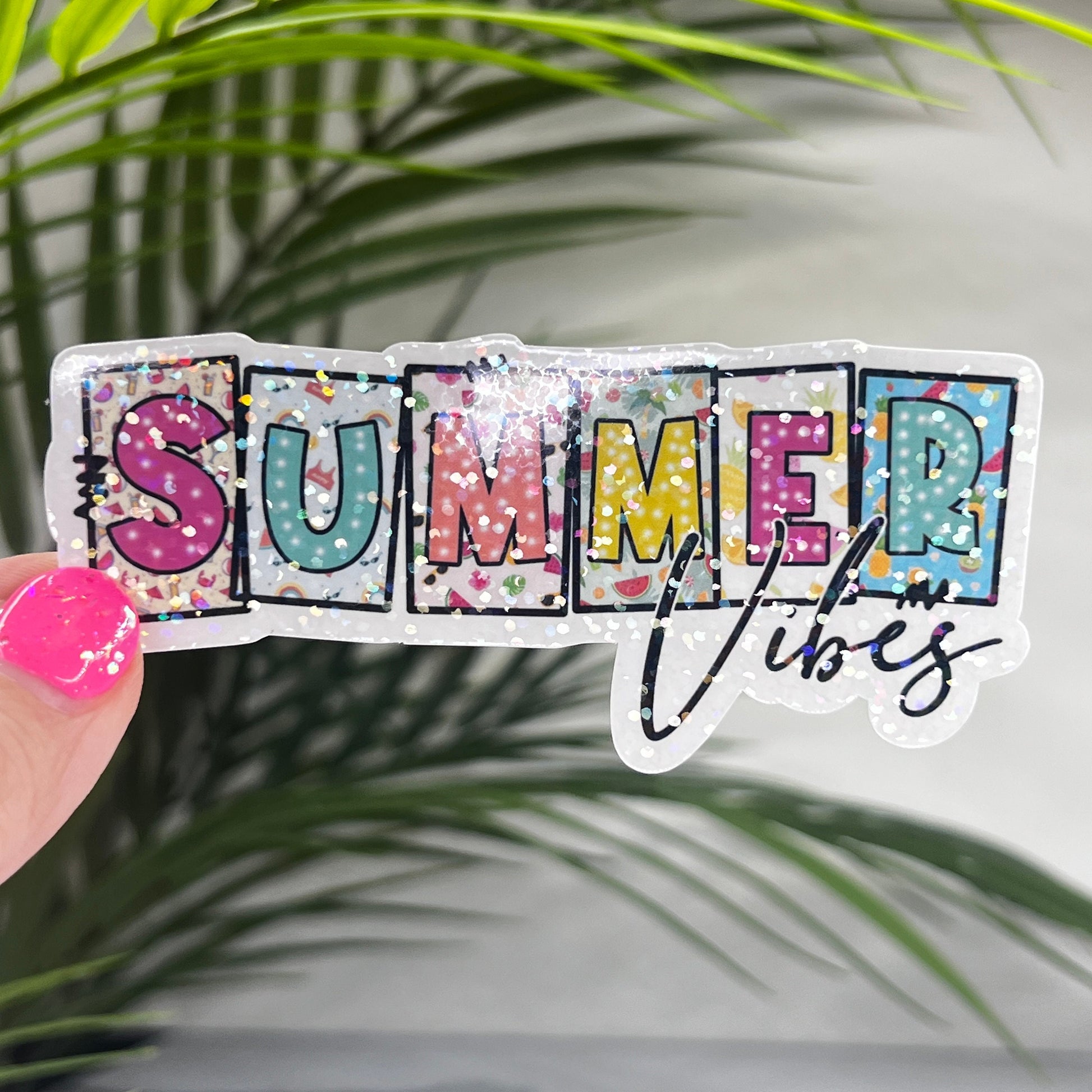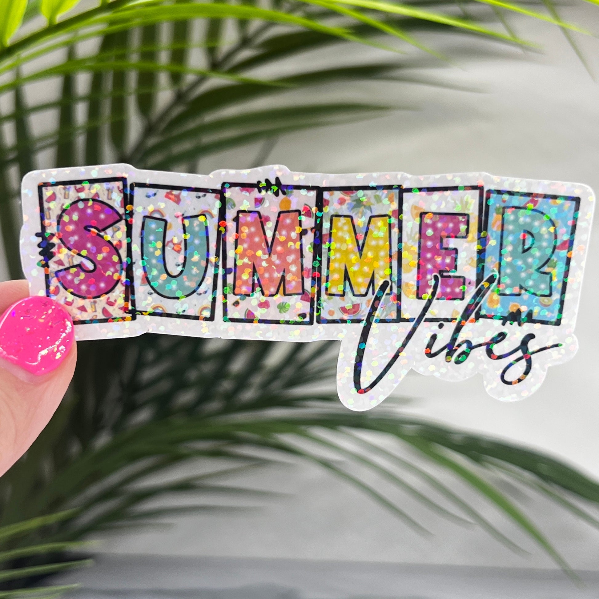 Summer Vibes Rainbow Holographic Sparkly Sticker Beach Life Decal Boating Sticker Summer Vacation Ocean Life Sticker