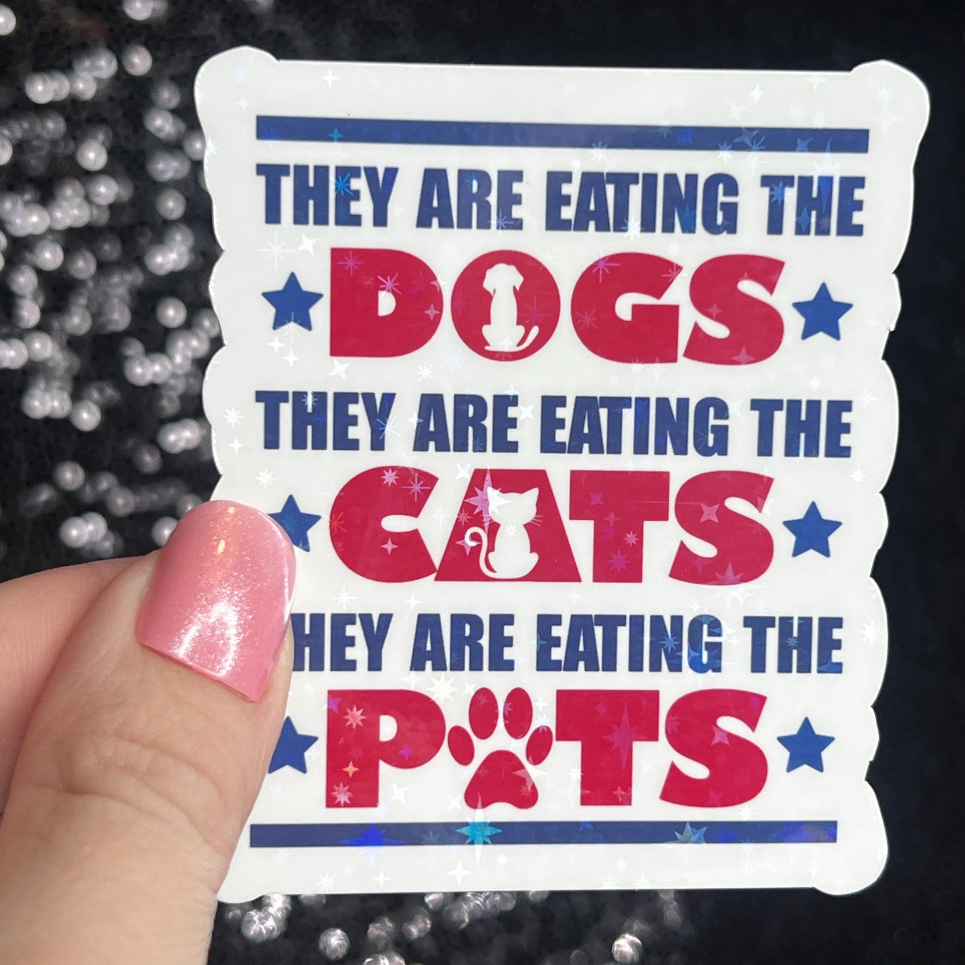 They Are Eating the Dogs Cats Pet Trump Political Sticker Holographic Sparky Decal Pro Choice Feminist Liberal Democrat Anti Trump