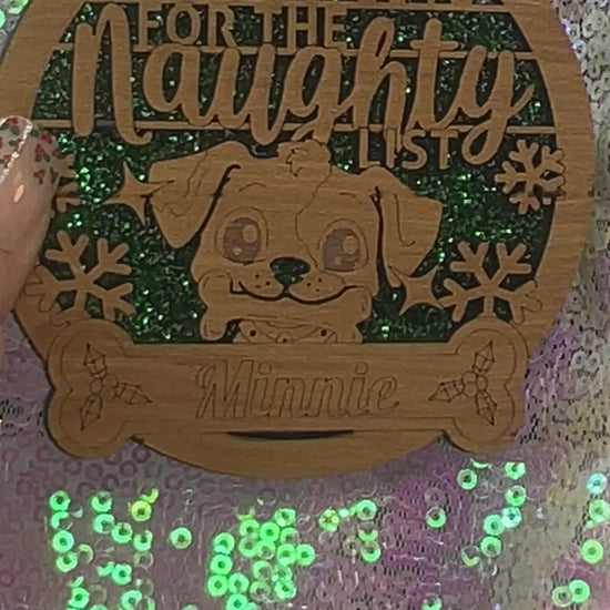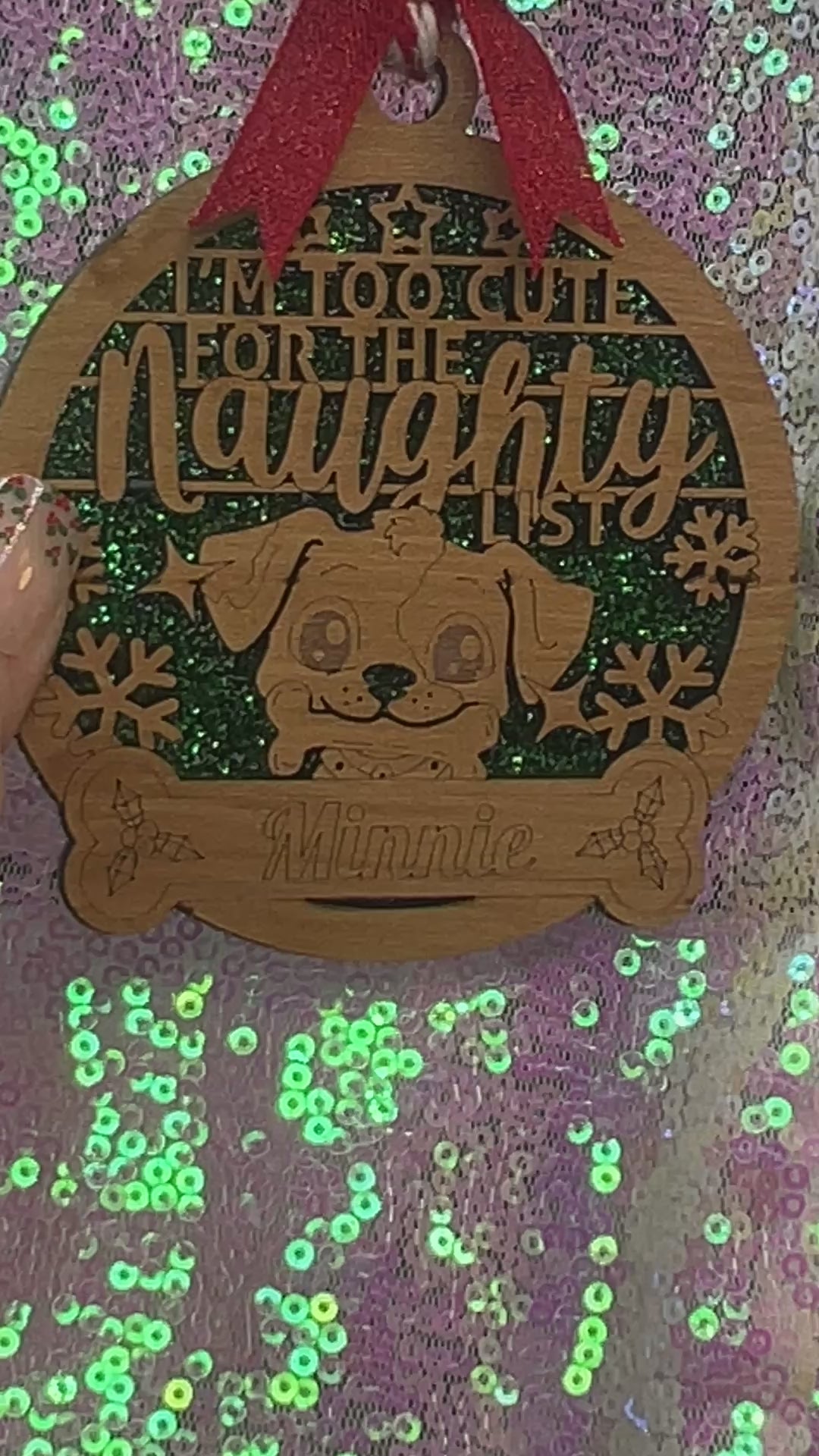 This adorable “I'm Too Cute for the Naughty List” Christmas ornament features an irresistibly sweet puppy proving that even the tiniest troublemakers deserve a spot front and center on your holiday branches.