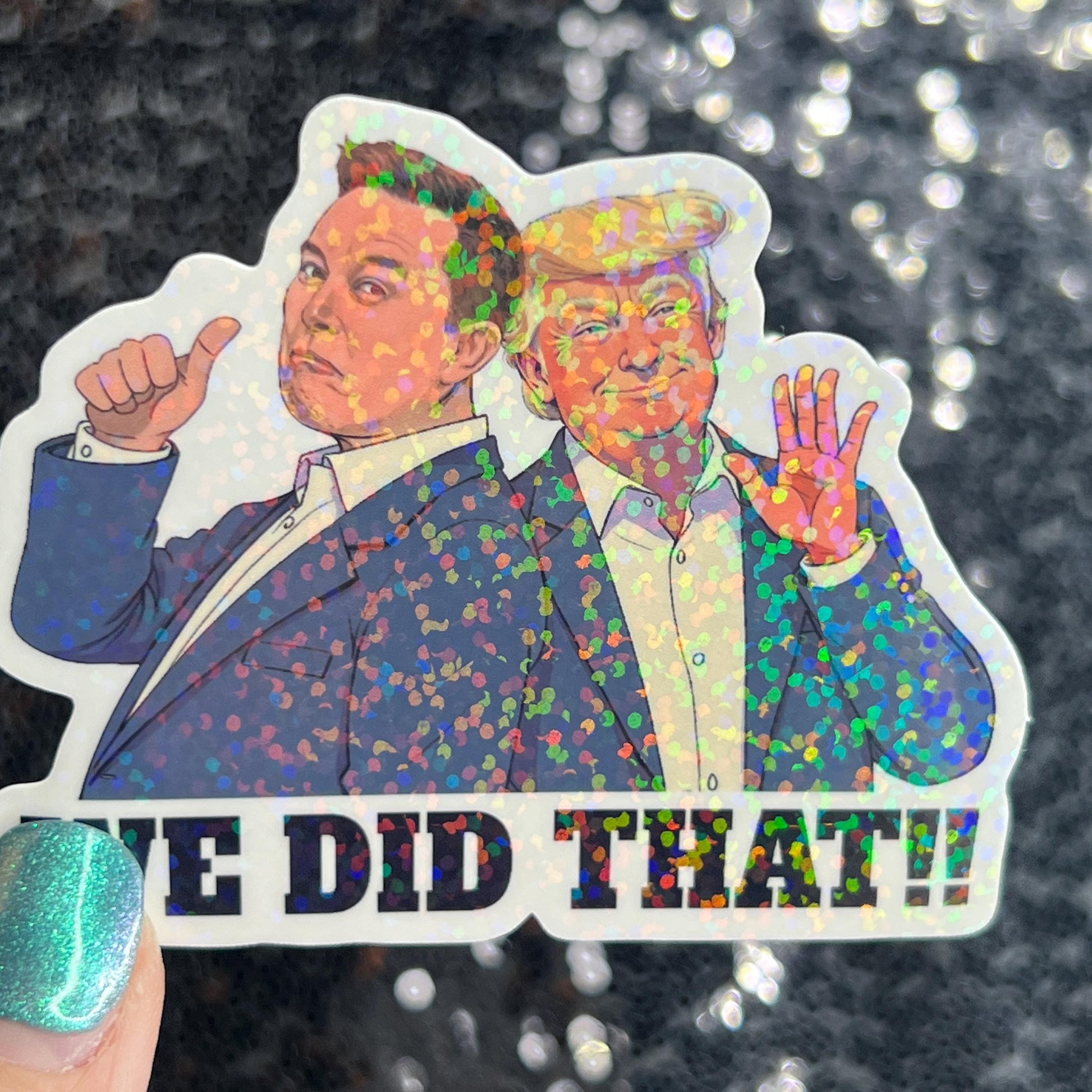 Trump & Elon one star We did that Sparkly Holographic Sticker Hands Off No Kings Sticker F Trump 8647 FDT Anti Elon Girls are fighting
