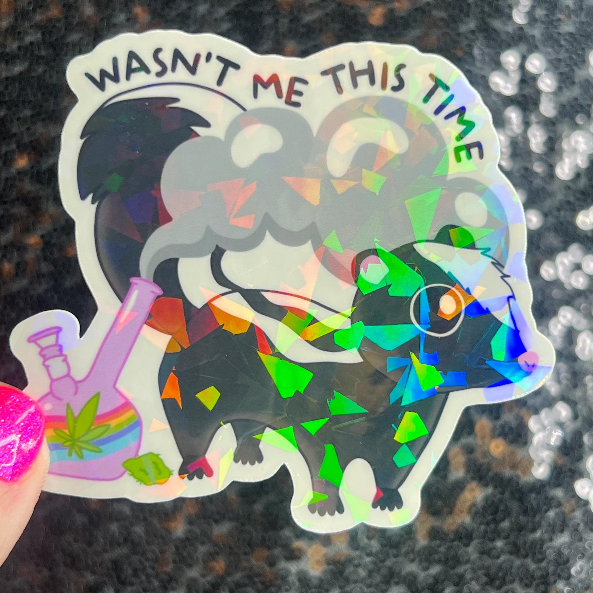 Wasn't Me This Time Skunk 420 Weed Funny Silly Holographic Sticker Mental Health Sparkly Spread Positivity Good Vibes Decal Depression