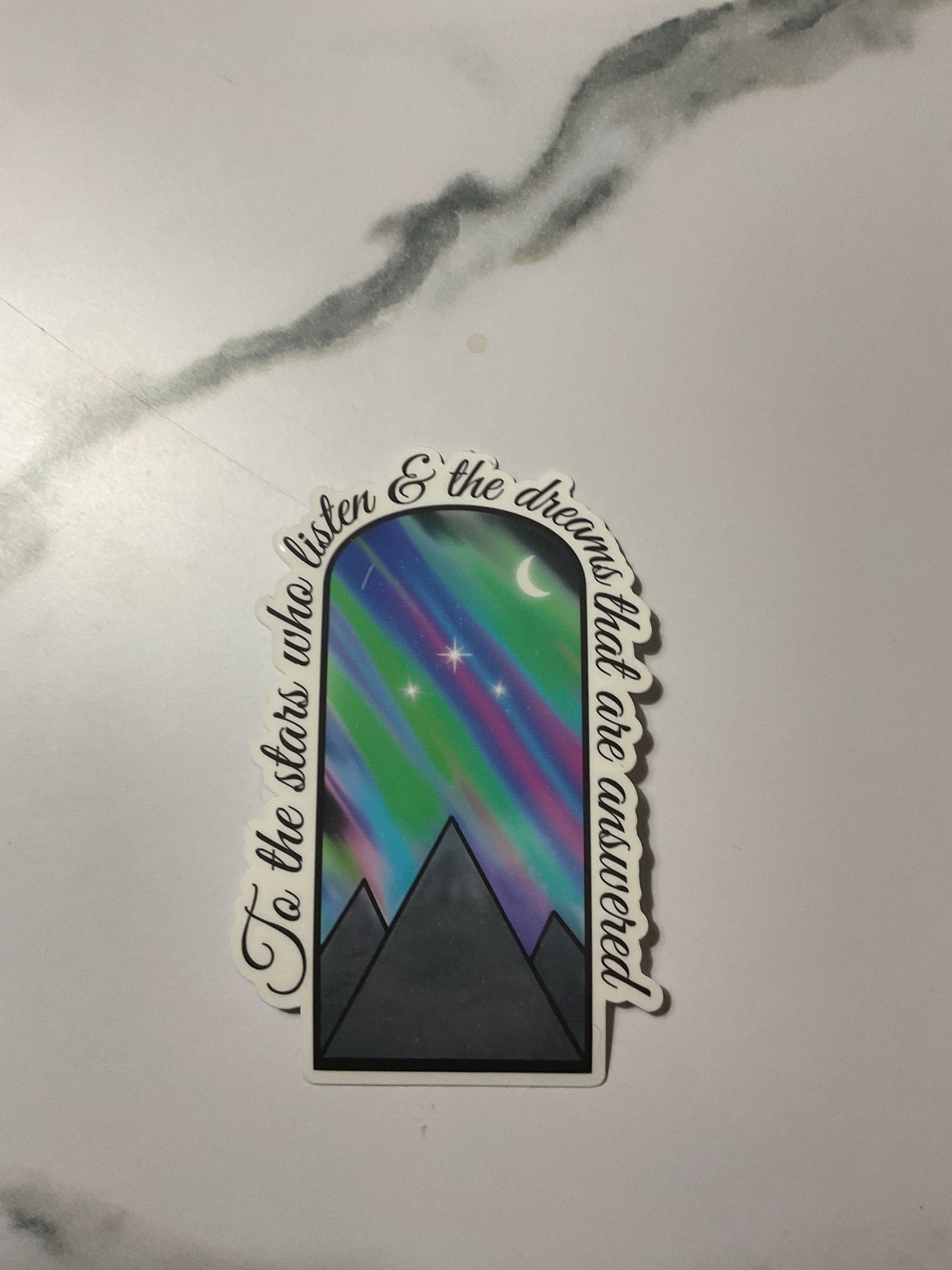 Add a touch of magic to your everyday life and let this ACOTAR-inspired sticker serve as a constant source of inspiration. Order now and embark on a journey to a world where dreams come true and the stars always lend an ear. sticker is 2.5 inches in width and 4 inches long.