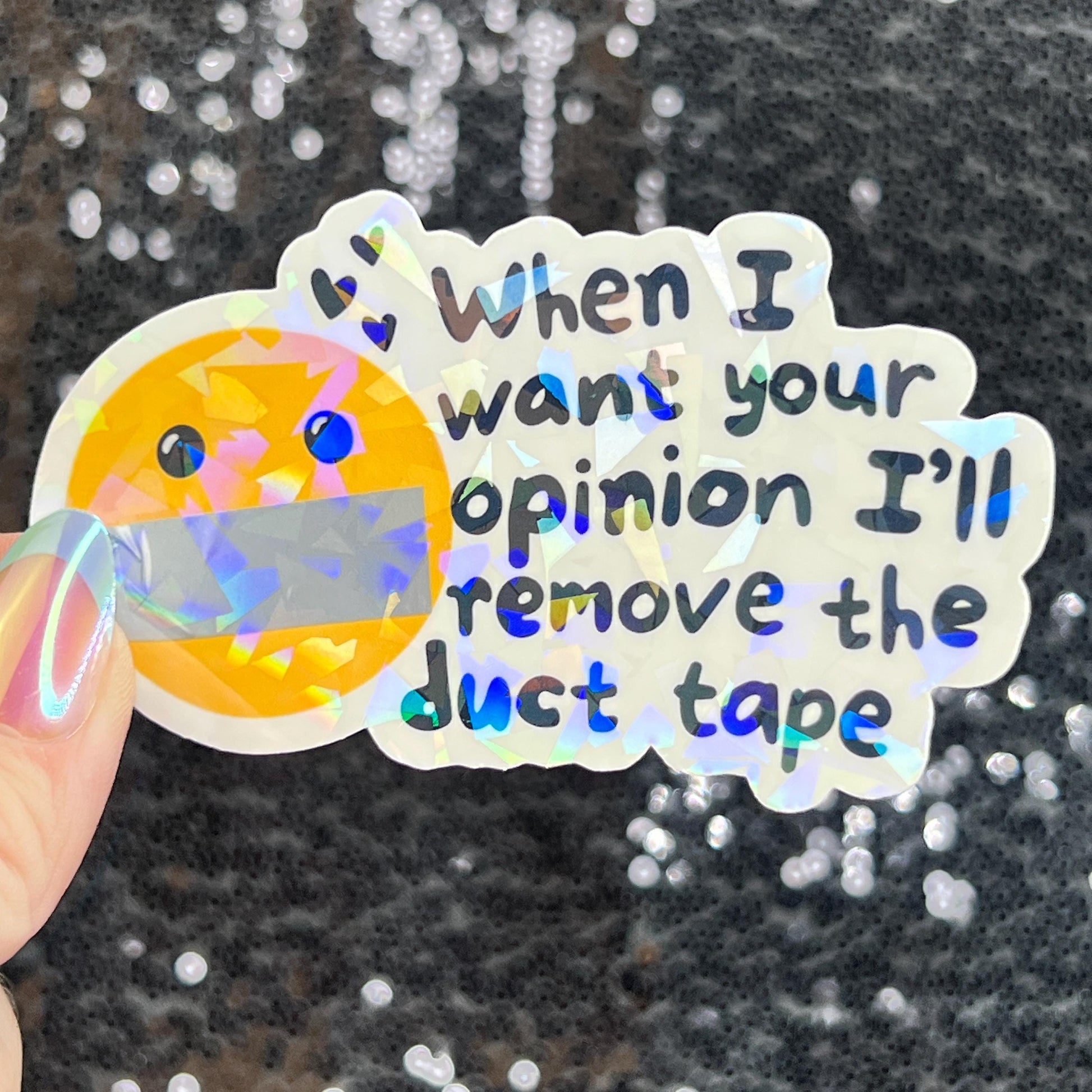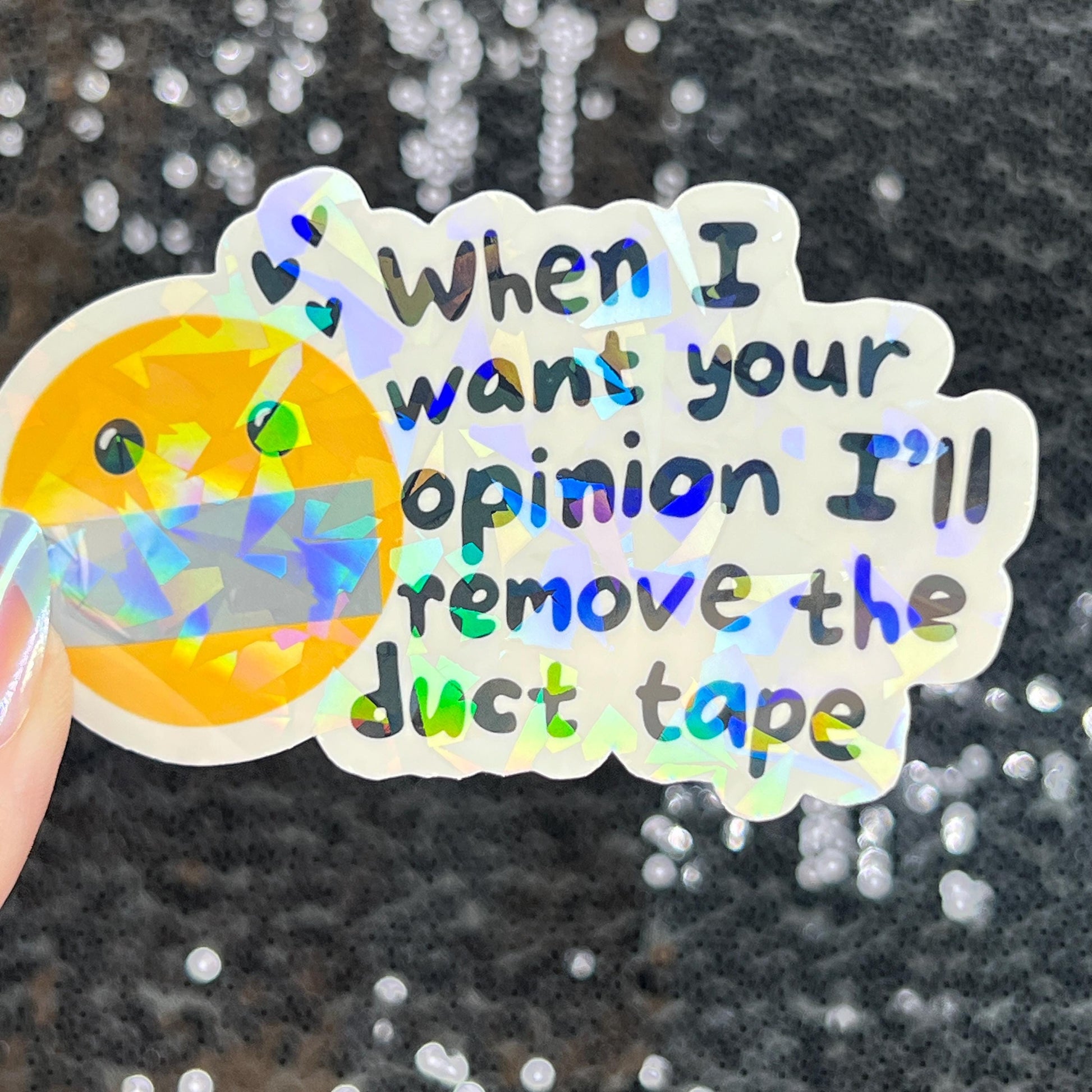 When I want your opinion I'll remove the duct tape Silly Dark Humor Holographic Sticker Sparkly Spread Positivity Good Vibes Funny Decal